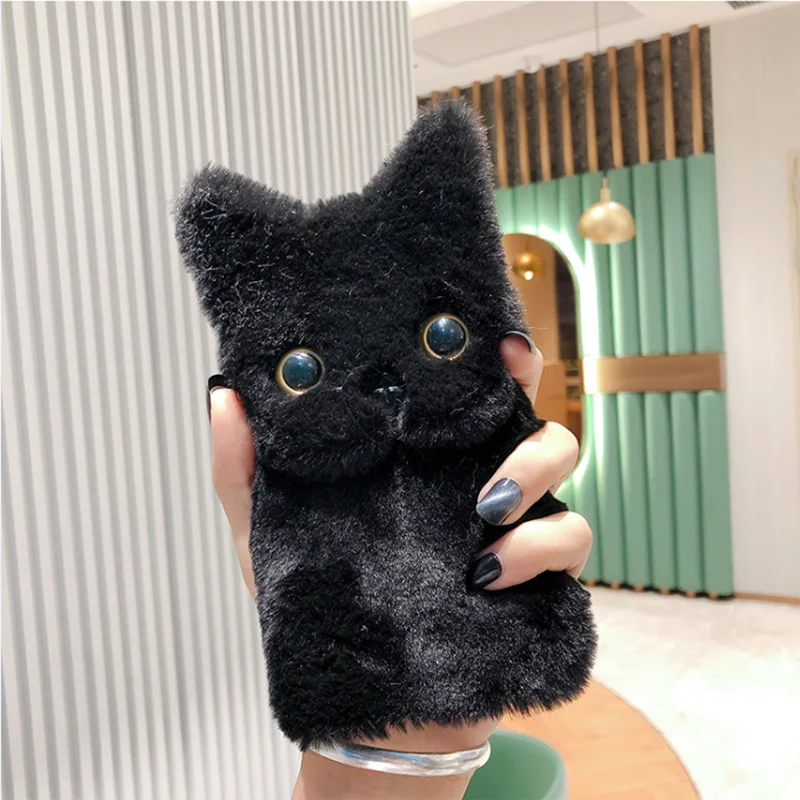 Зимний теплый плюшевый милый чехол для телефона с кошкой для IPhone...