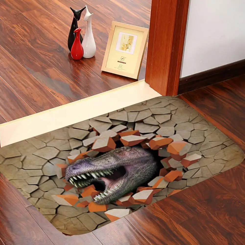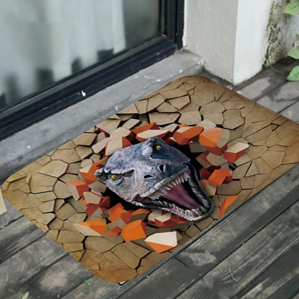 Дверной коврик, декоративный дышащий фланелевый нескользящий напольный коврик, дверной коврик, Забавный мультяшный 3D напольный коврик с рисунком динозавра, дверной коврик