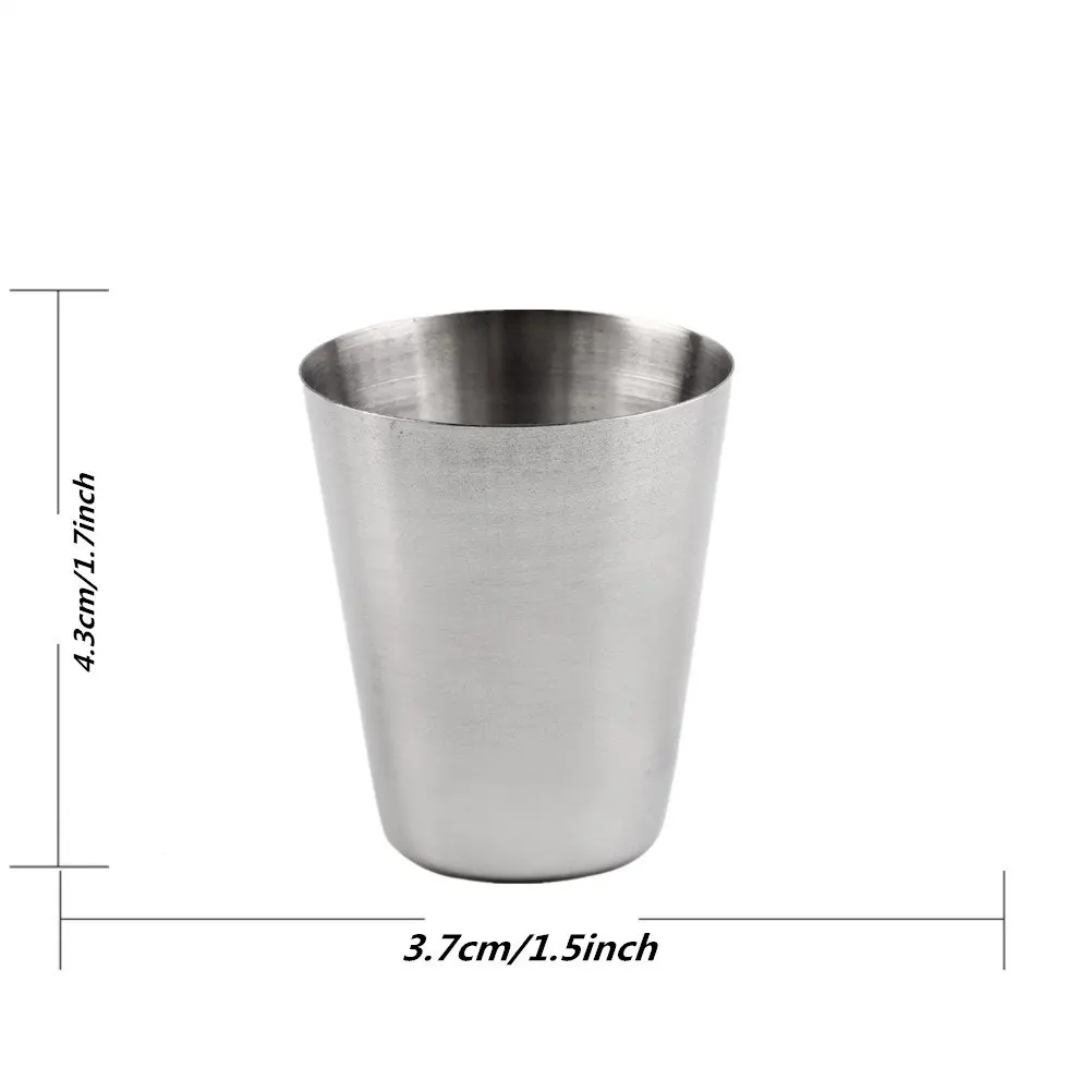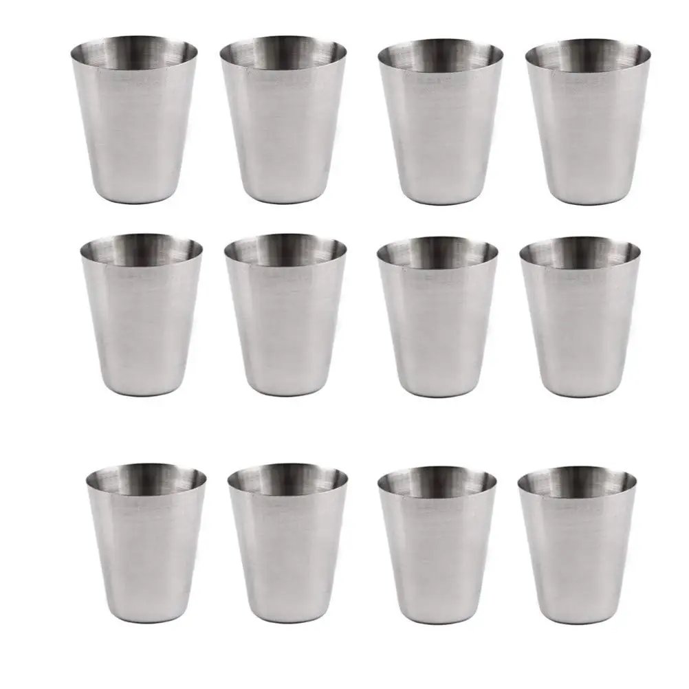 Объем: Около 30 мл.Высокое качество:Чашки изготовлены из прочной нержавеющей стали, эти сверхпрочные металлические стаканчики противостоят ржавчине и вмятинам и не будут показывать неприглядные отпечатки пальцев.Широкое использование:Идеально подходит для подачи охлажденной воды, соков, чая со льдом, молока, пивных коктейлей и вина! Портативные чашки для путешествий, кемпинга, катания на лодках, барбекю, бара, ресторана, охоты, пляжных бассейнов и т. д. Эти привлекательные отдельные порционные чашки идеально подходят для любого соуса-окунания или ужина.Безопасно для использования:Нержавеющая сталь не содержит bpa и вредных токсинов, это в сочетании с нержавеющими чашками сверхмощной природы делает их идеальными для детей и для заботливых потребителей! Интерфейс гладкий и гладкий, и нет проблем с обрезанием рук и рта, чтобы повредить людям.Удобно:Легко захватывается, с закругленными краями для питья. Чашки из нержавеющей стали можно легко мыть вручную и безопасно мыть в посудомоечной машине. Мини-размер чашек из нержавеющей стали экономит пространство и удобен для транспортировки в мешки для обеда и корзины для пикника!