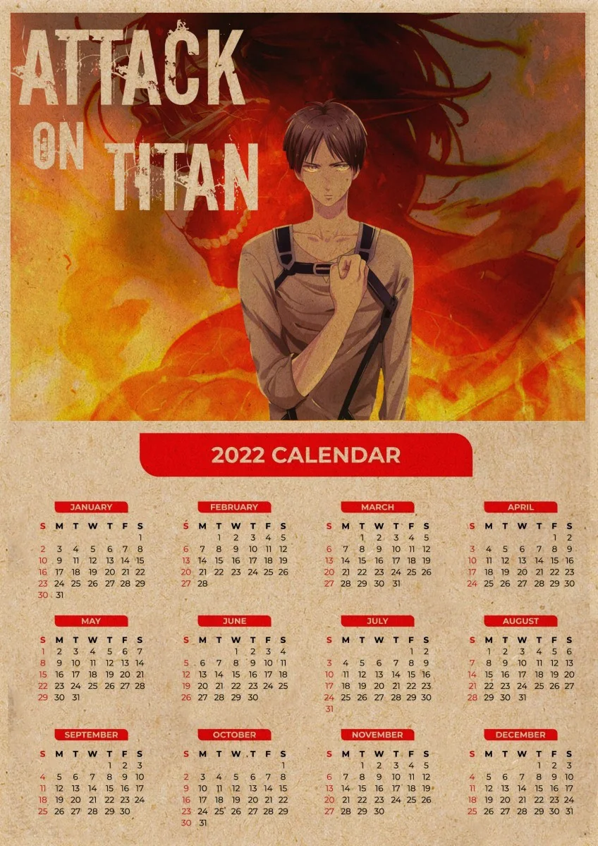 Плакаты из крафт-бумаги 2022, календарь классического японского аниме атака на Титанов, настенная наклейка, наклейка для детей, подарки, искусство для комнаты