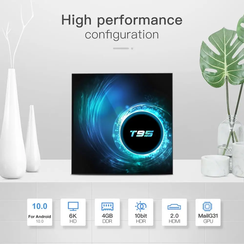 T95 4K Высокая четкость 32G Bluetooth-Совместимость 5,0 WiFi Smart TV телеприставка медиаплеерХарактеристики:В ТВ Декодер каналов кабельного телевидения принимает 2,4 ГГц Wi-Fi, который имеет более высокую, шире и надежнее Интернет соединения.С операционной системой Android 10, она дает вам изображения и видео высокой четкости.Он имеет большую память 32 ГБ для выполнения нескольких задач.Это plug and play, который удобен в использовании.Название товара: ТВ-приставкаМатериал: АБС-пластикАккумулятор пульта дистанционного управления: 2 батарейки ААА (не входит в комплект)Тип вилки: штепсельная вилка европейского стандарта, штепсельная вилка британского стандарта, штепсельная вилка американского стандарта (опционально)Операционная система: для Android 10Процессор: для Allwinner H616 четырехъядерный ARM Cortex-A53Графический процессор: для Mali-G31 MP2SDRAM: DDR3 2 ГБ/4 ГБФлэш-память: EMMc 16 Гб/32 ГБ/64 ГБВход постоянного тока: 5 В/2 а постоянного токаUSB хост: 2 USB 2,0, U диск и USB HDDКард-ридер: Micro-SD/SDHC/MMCLAN: RJ45 Ethernet порт (100 м)Wi-Fi: 2,4 ГГцФорматы декодера: VP9-10 профиль-от 2 до 6K @ 30 кадров в секундуH.265 HEVC MP-10@L5.1 до 6K @ 30 кадров в секундуH.264 AVC для HP@L5.1 до 4K x 2K @ 30fpsH.264 MVC до 1080P @ 60fpsMPEG-4 ASP @ L5 до 1080P @ 60fps (ISO-14496)WMV / VC-1 SP / MP / AP до 1080P @ 60fpsAVS-P16 (AVS +)/ AVS-P2MPEG-2 MP/HL до 1080P @ 60fps (ISO-13818)MPEG-1 MP/HL до 1080P @ 60fps (ISO-11172)Реальное видео 8/9/10 до 1080P @ 60 кадров в секундуМедиаформаты: Avi/Rm/Rmvb/Ts/Vob/Mkv/Mov/ISO/ASF/DAT/MPG/MPEGМузыкальные форматы: MP3/WMA/AAC/WAV/OGG/AC3/DDP/True HD/DTS/HD/FLAC/APEФорматы фотографий: JPEG/BMP/GIF/PNG/TIFFФайловая система жесткого диска: FAT16/FAT32/NTFSПоддерживаемые подзаголовки: SRT/SMI/SUB/SSA/IDX + USBХарактеристики: подключи и работай, большая память, надежнаяРазмеры: 10 см x 10 см x 2 см/3,94 "x 3,94" x 0,79 "(прибл.)Примечания:Благодаря светильник и экрана Цвет Товара может быть s светильник ly отличается из-за характеристик монитора компьютера.Возможны незначительные отклонения в размерах из-за различных измерений вручную.Посылка включает в себя:ТВ-приставка-1 шт.1 х пульт дистанционного управления1 х Кабель питания1 x Кабель высокой четкости1 x Руководство пользователя