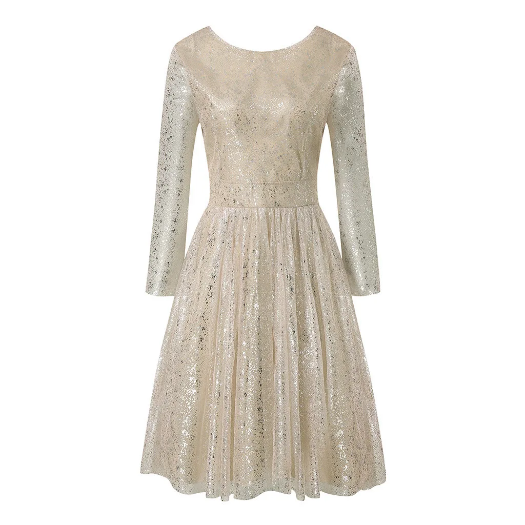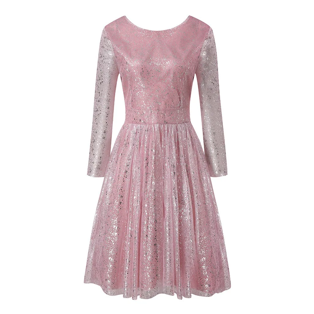 Женское платье с блестками, однотонное вечернее платье с длинным ру...