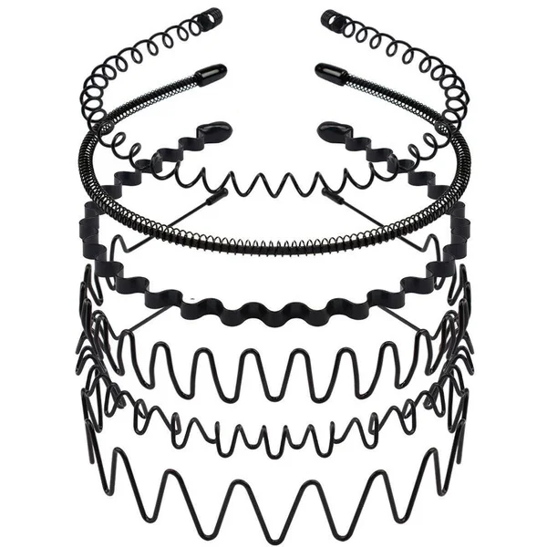 16 шт. Модный черный металлический волнистый стиль спортивный ободок Однотонный мужской женский унисекс ободок для волос Повседневный взрослый головной убор для мальчика