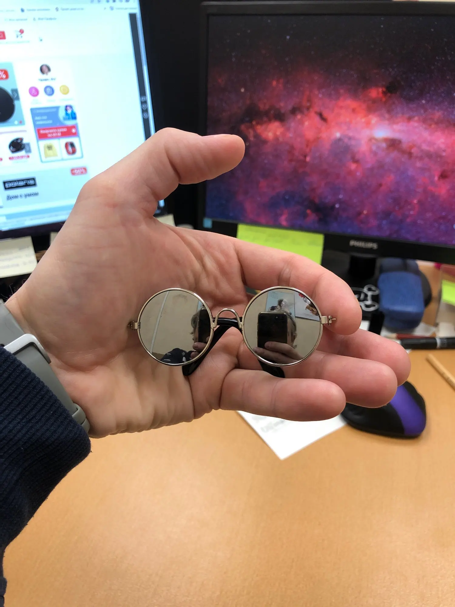 Спасибо за эмоции, ржал как конь! очки хорошие и очень, очень быстро доставили, всё супер! Однако, применять их по назначению не возможно! Они как и написано в описании 8 см ))) и подошли только коту ! Это прикол конечно! Ещё раз спасибо посмеялся!