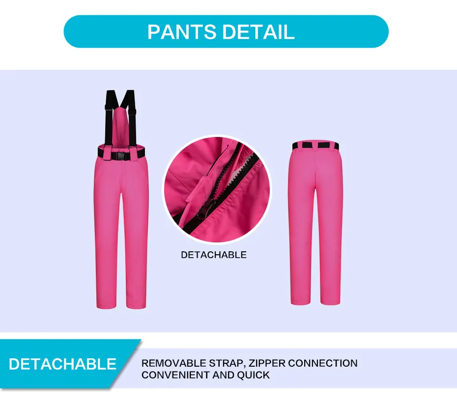 Супертеплый лыжный костюм, женский зимний лыжный пуховик и штаны, водонепроницаемые дышащие костюмы для катания на лыжах и сноуборде, комплект для снега