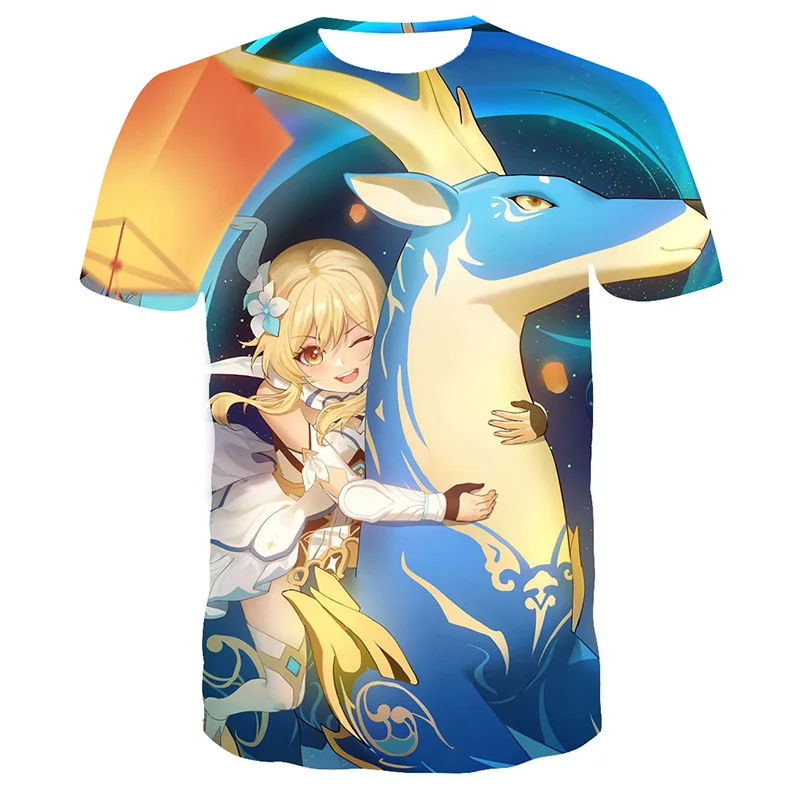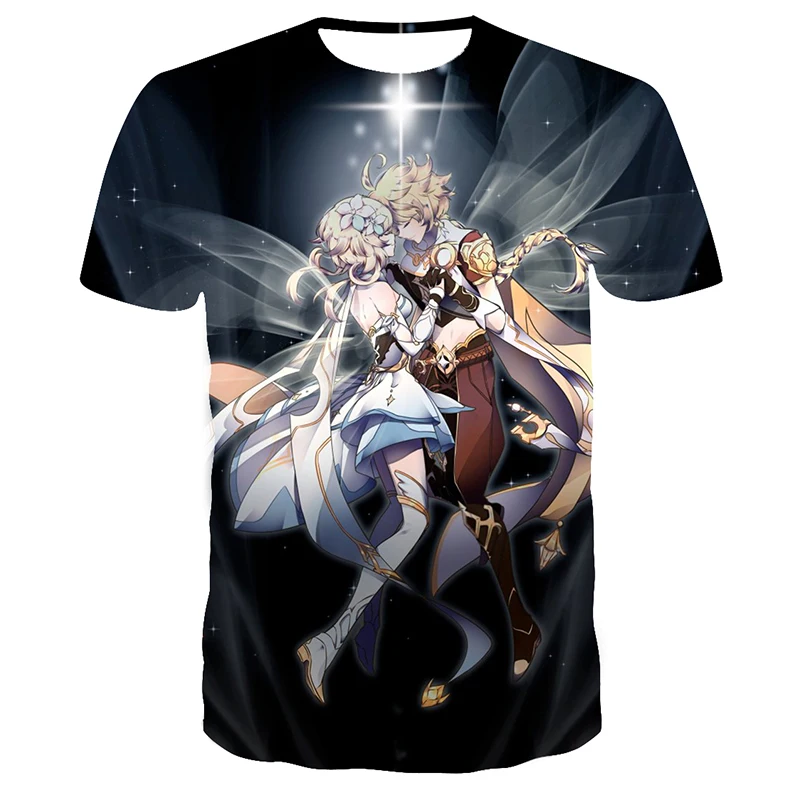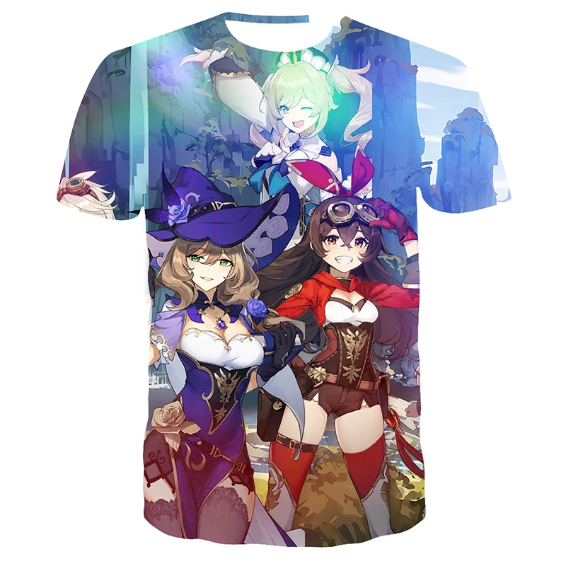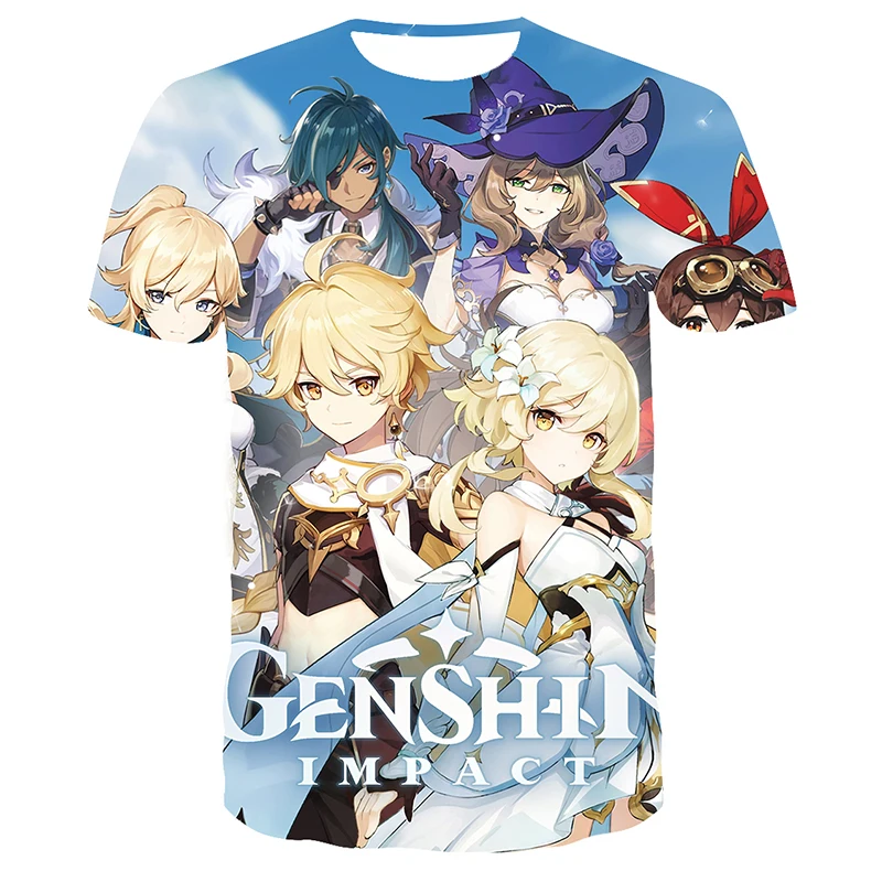 Футболка унисекс с рисунком Аниме игры Genshin Impact Футболка мужская для мальчиков Girl Student, топы для подростков, крутая дышащая одежда с коротким рукавом