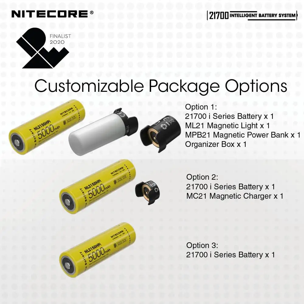 NITECORE MPB21 21700 интеллектуальная аккумуляторная система NL2150HPi 5000 мАч перезаряжаемая батарея + 3 в 1 Внешний аккумулятор + ML21 высокий CRI фонарик