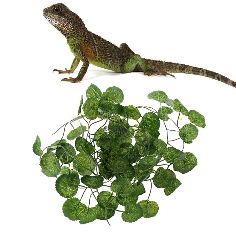 Искусственная лоза 4XFA Террариум для рептилий коробка украшение для среды ящерица Зеленые искусственные растения листья