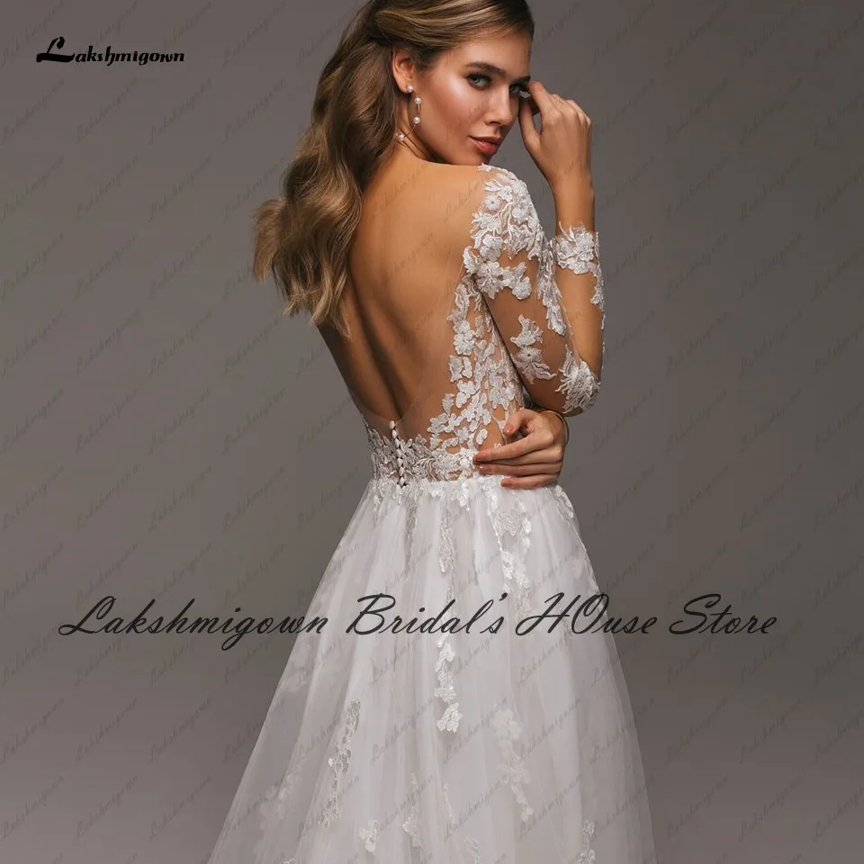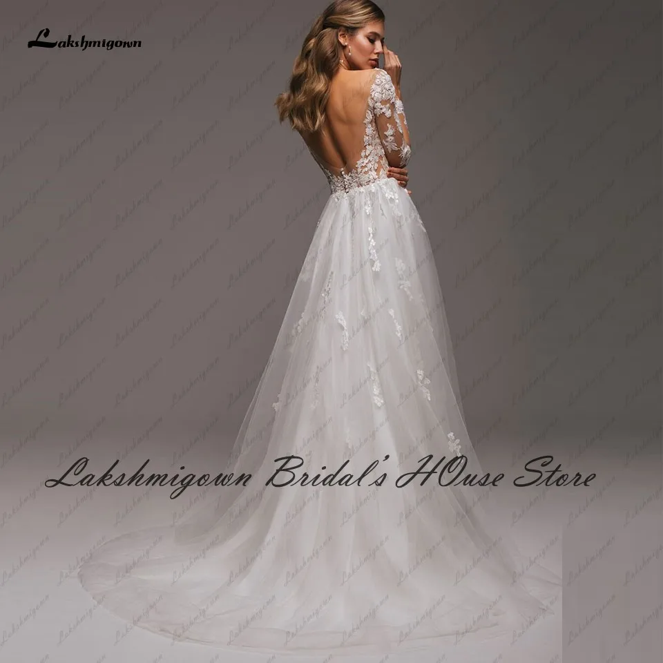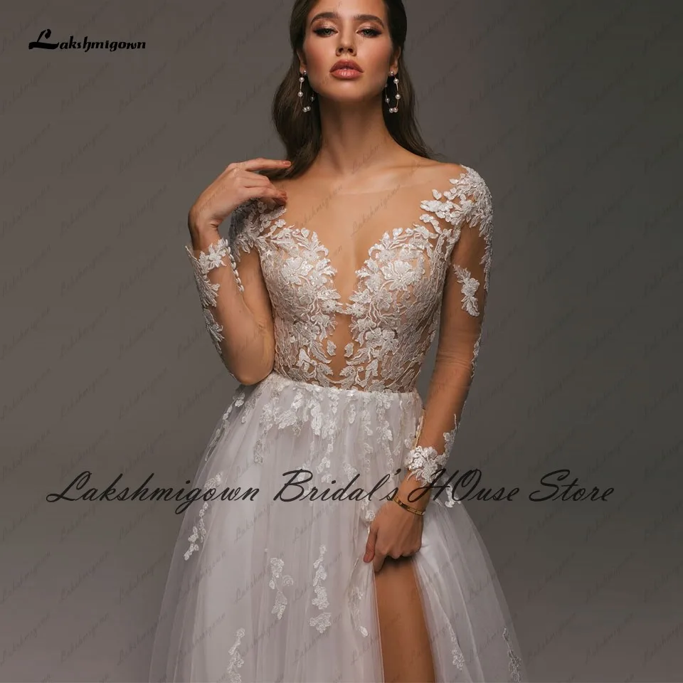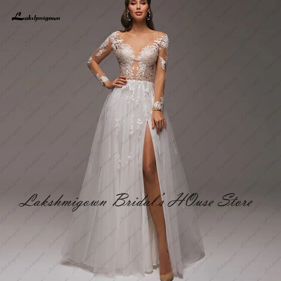 Lakshmigown пикантное свадебное платье с длинным рукавом 2022 халат прозрачная Иллюзия открытая спина с белыми искусственными разрезами по бокам
