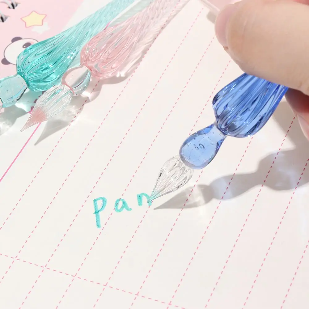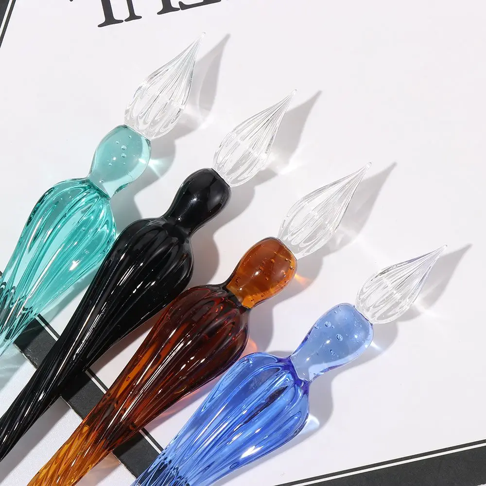 Винтажная стеклянная перьевая ручка, наполнитель с чернилами для подписей, письма, каллиграфии, принадлежности для художественной живописи, 1 шт.