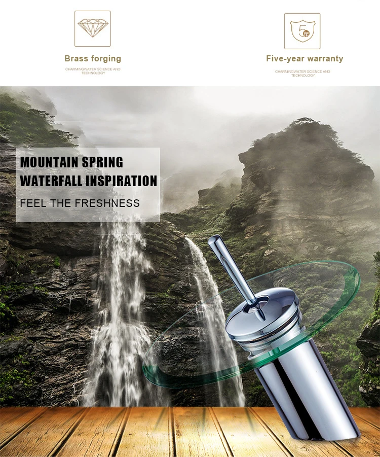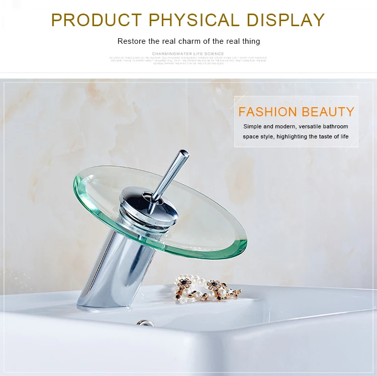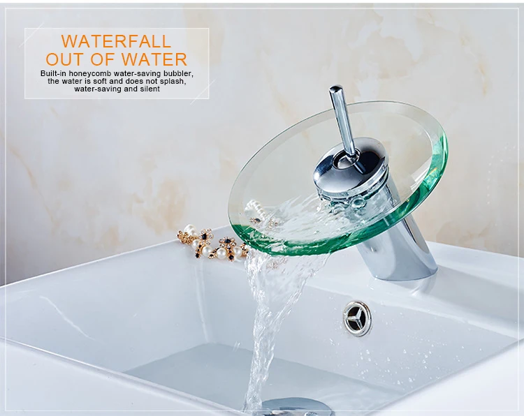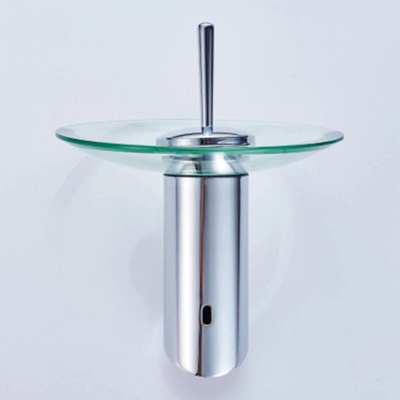 Латунный Смеситель для раковины на платформе, креативный из нержавеющей стали водопад с одной ручкой из холодного и горячего стекла для ванной комнаты
