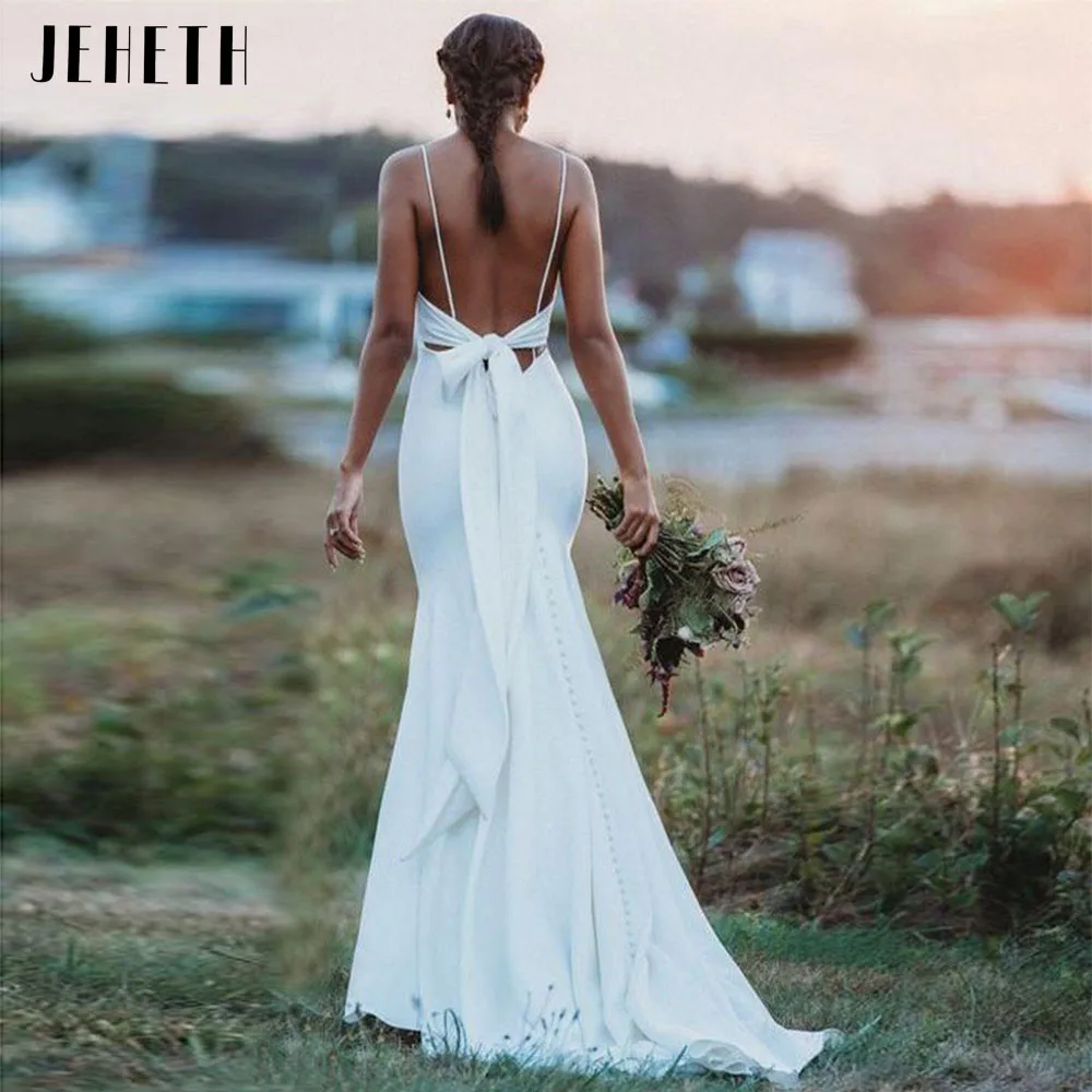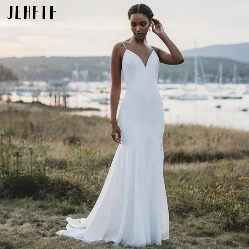 Простое милое мягкое атласное пляжное свадебное платье JEHETH без рукавов Милое Свадебное платье на бретелях с открытой спиной для женщин 2021