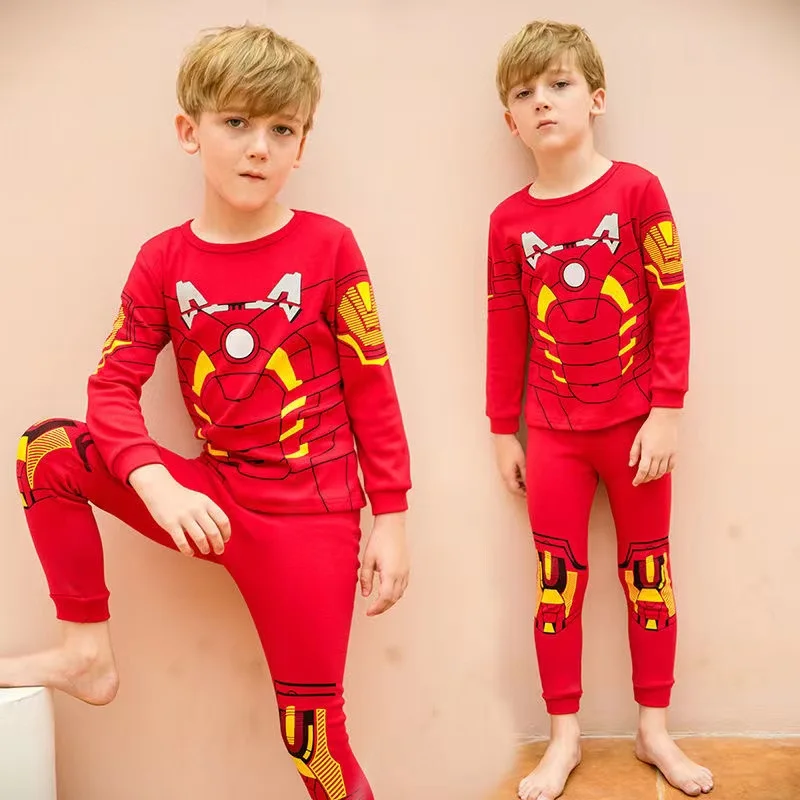 Детский пижамный комплект, Хлопковая пижама для маленьких мальчиков и девочек с мультяшным рисунком Человека-паука, машины, Микки Мауса, пижамный комплект с длинным рукавом, топ, длинные штаны, одежда для сна