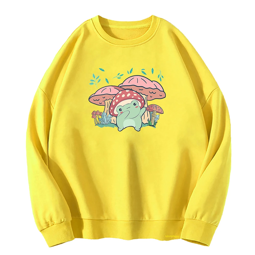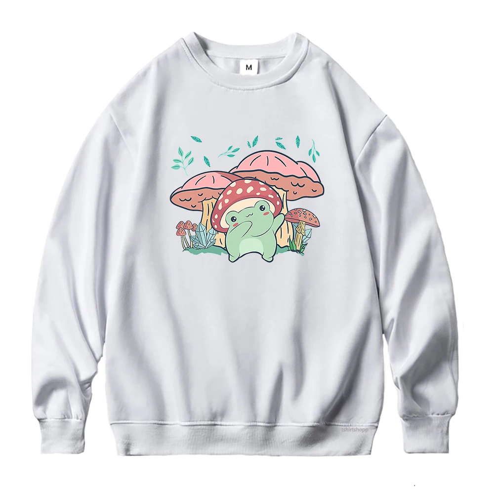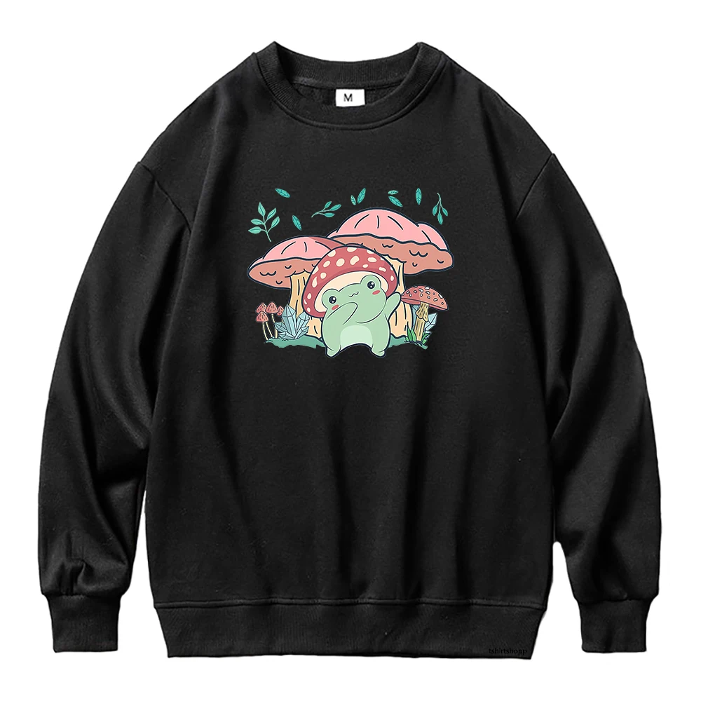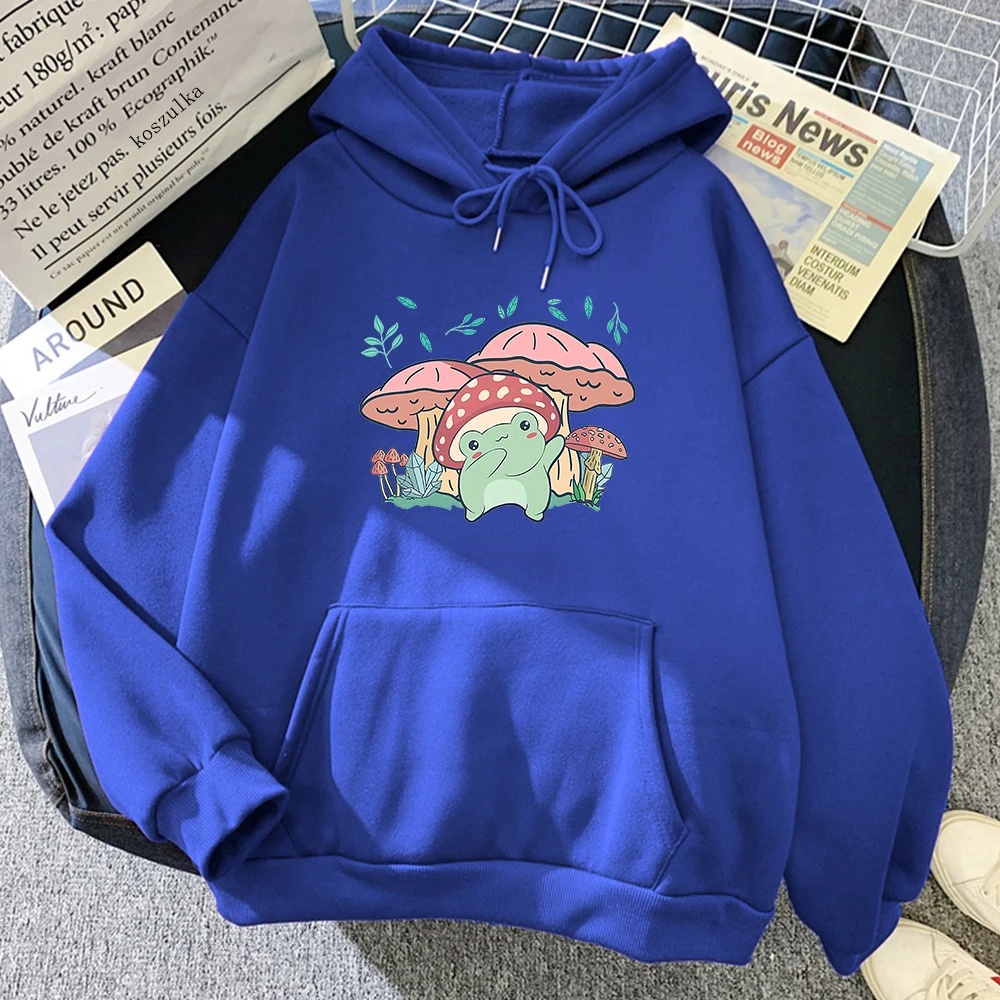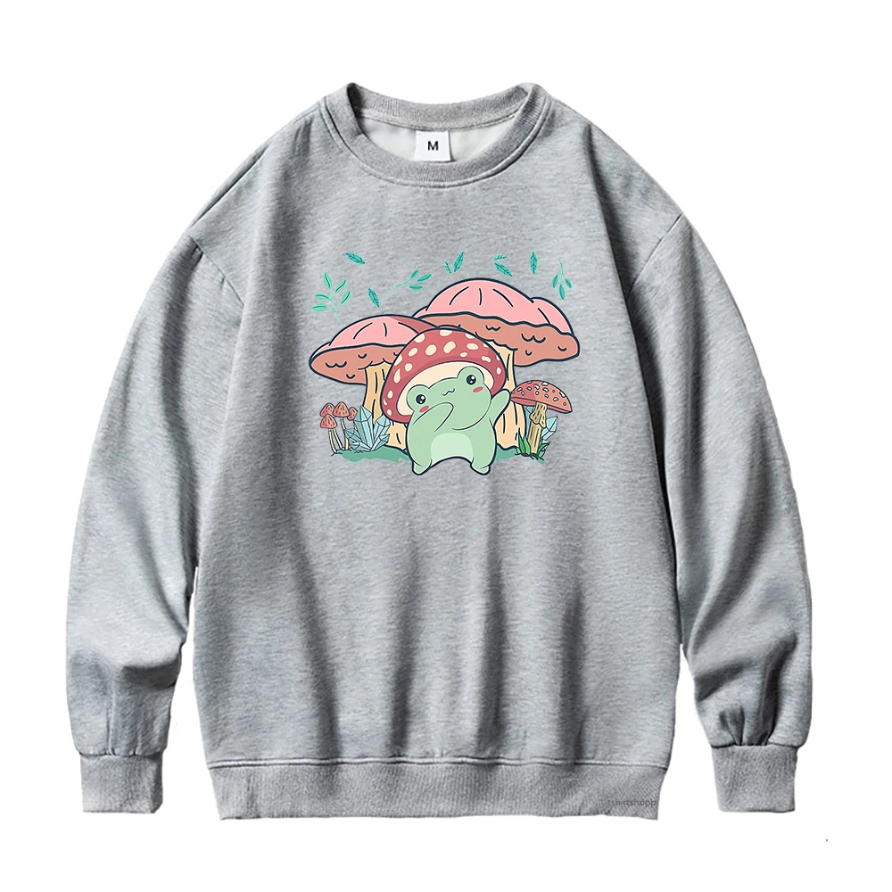 Худи женское с мультяшным принтом, свитшот с рисунком лягушки, гриба, в стиле Харадзюку, одежда в эстетическом стиле, худи с графическим принтом, зима-осень
