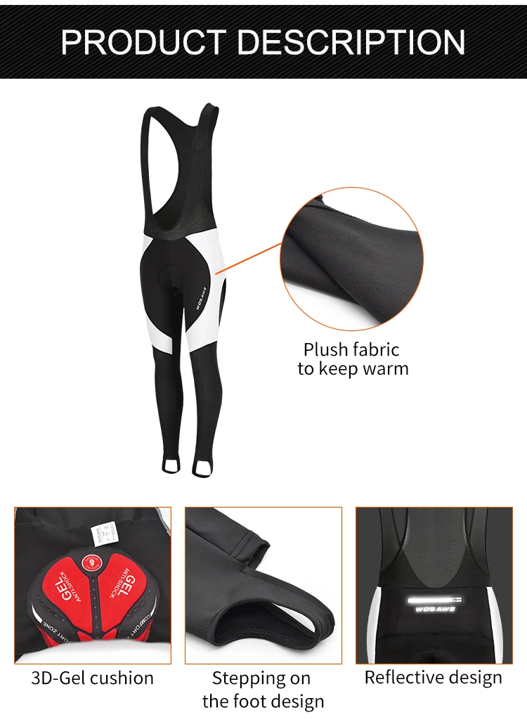 WOSAWE Мужские Зимние эластичные и флисовые брюки на подтяжках для велоспорта
