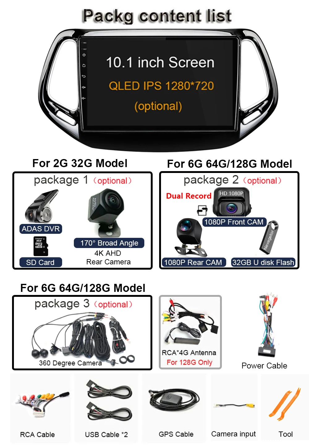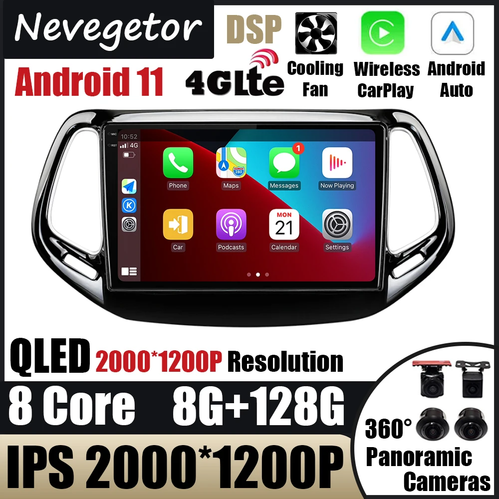 Автомобильный мультимедийный плеер с навигацией, 8 + 128G для Jeep Compass 2 2016 2017 2018 Android 11 4G радио 2 Din Carplay AM RDS IPS DSP 128G