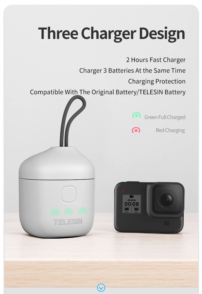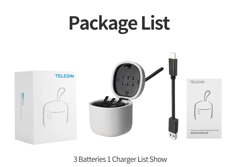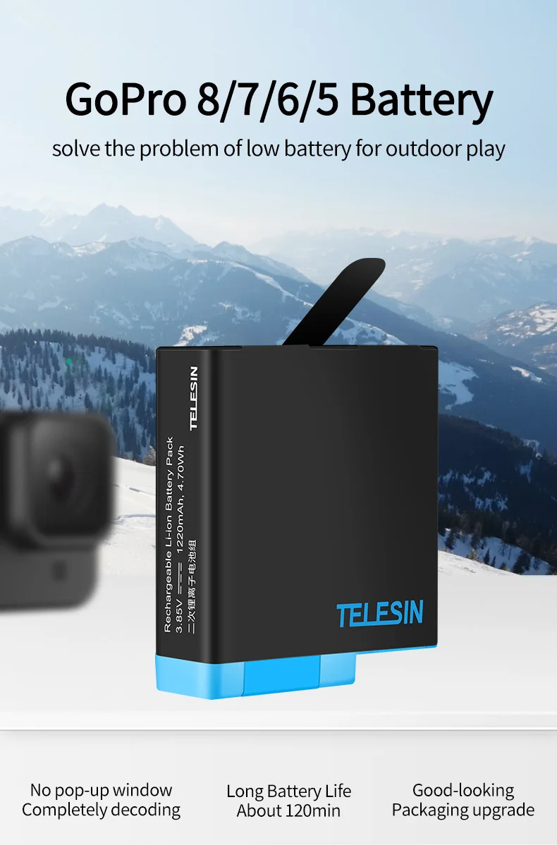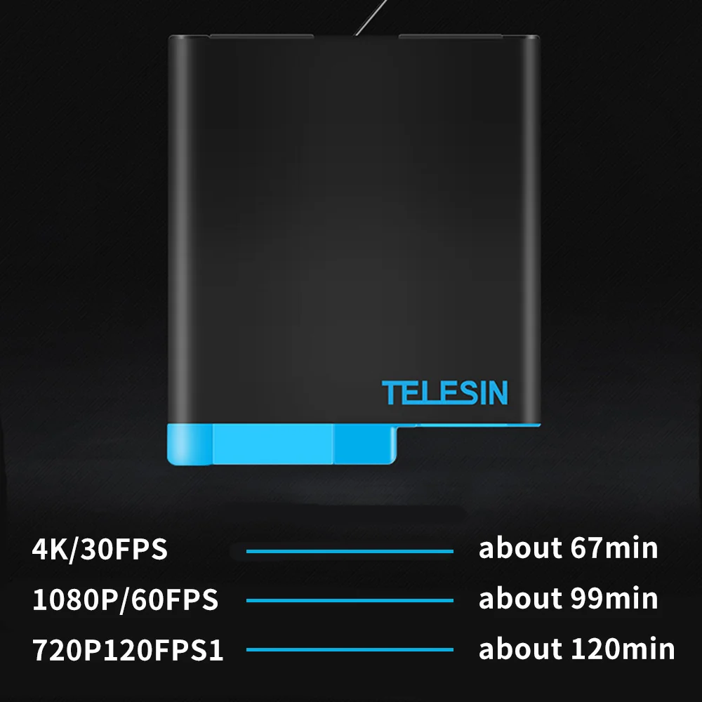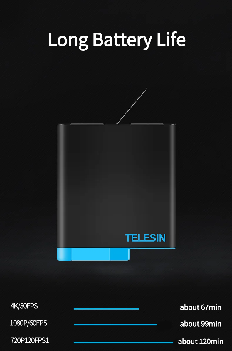 Зарядное устройство TELESIN, 3 шт., 1220 мАч, 3 слота