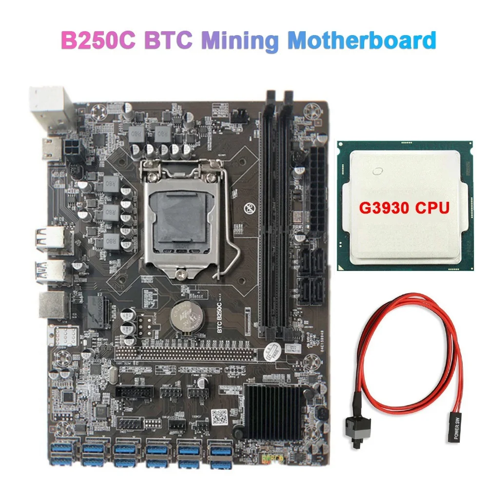 Материнская плата B250C для майнинга BTC с процессором G3930 + кабель переключения 12xpcie на USB3.0, слот для графической карты LGA1151, поддерживает DDR4 RAM