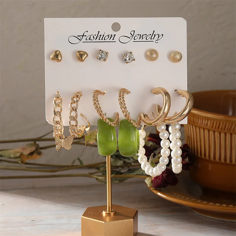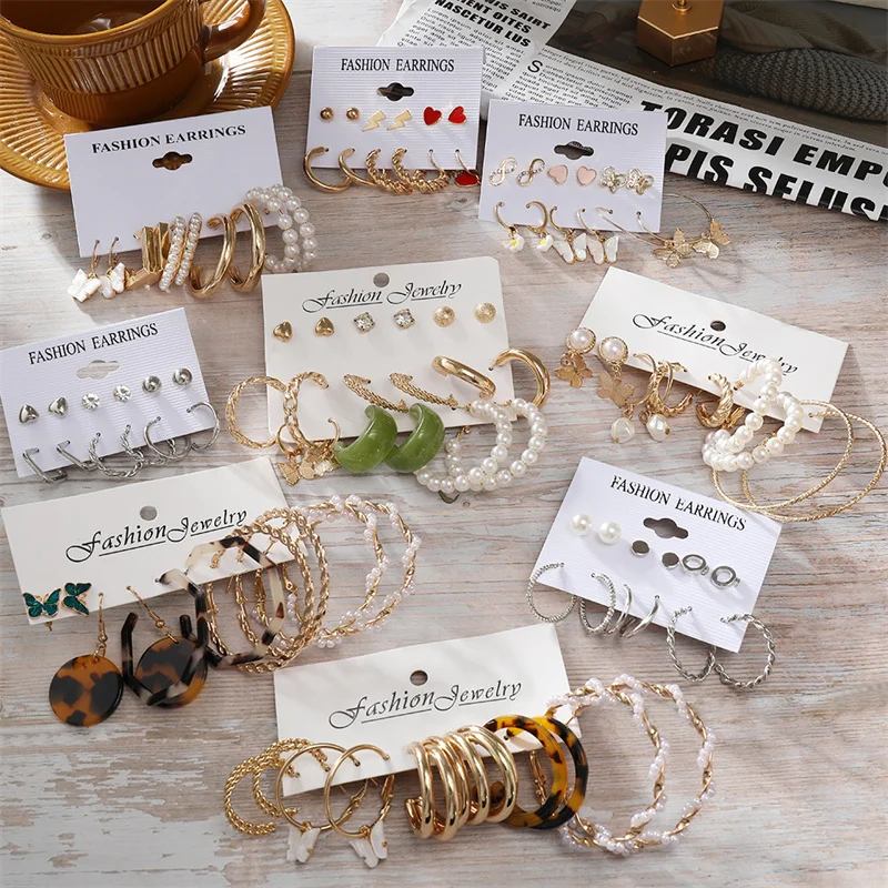 Набор винтажных серег с жемчугом, бабочкой, леопардовым принтом, дл...