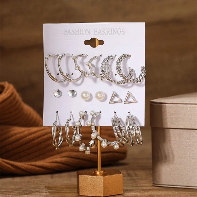 Набор серег-колец для женщин и девушек, комплект простых Многослойн...