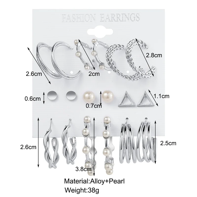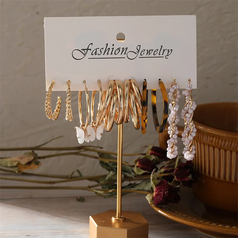 Комплект женских серег-колец с жемчугом и леопардовым принтом