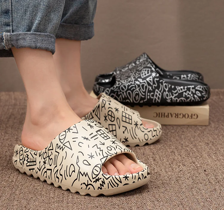 2021 граффити с открытым носом тапочки с толстой подошвой женские с...