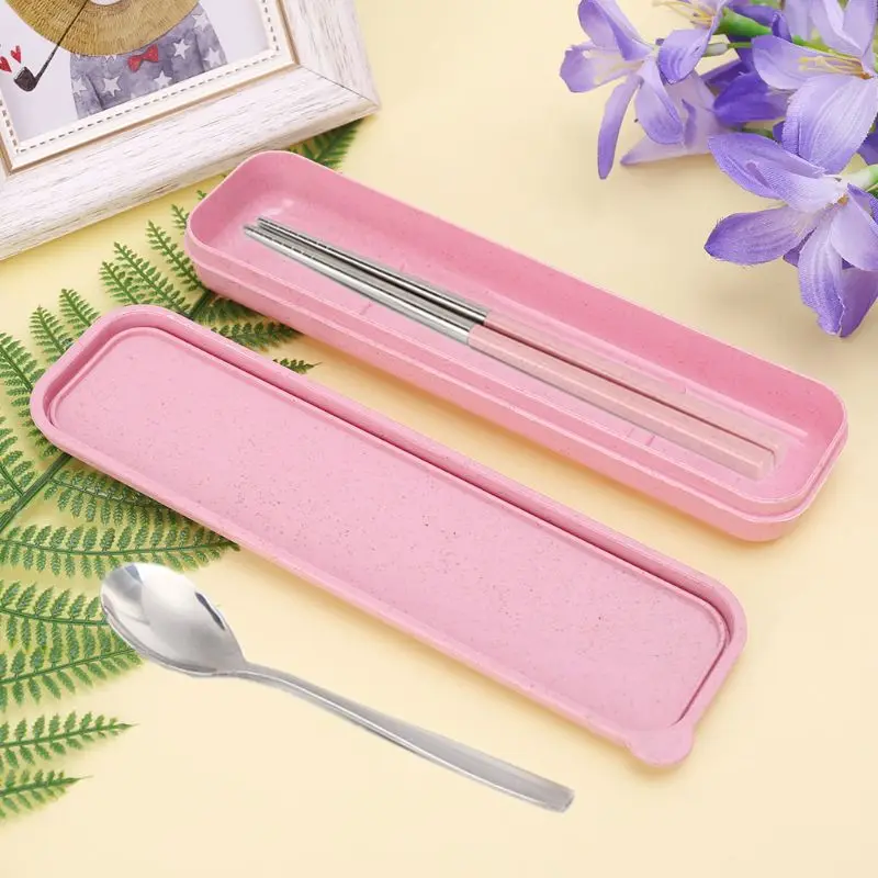 Портативные экологически чистые столовые приборы из пшеничной соломы коробка для кемпинга пикника Посуда кухонная утварь чехол для путешествий прямая транспортировка