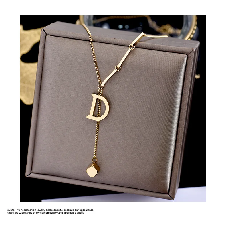Женское ожерелье с подвеской в виде буквы D, из титановой стали