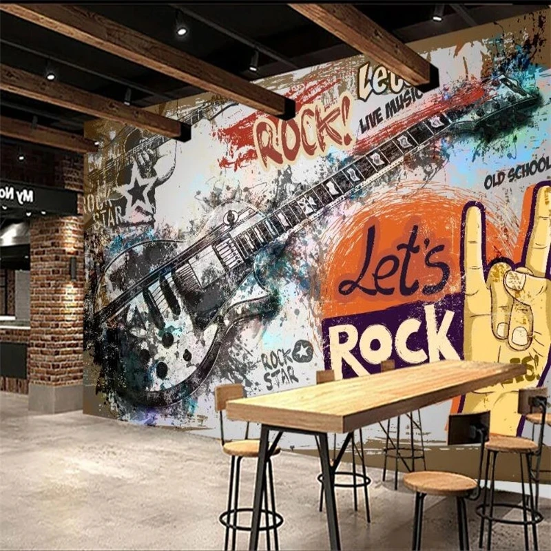 Пользовательские европейские американские граффити гитара Рок тема самоклеящиеся обои 3D музыкальный бар KTV промышленный Декор фон роспись