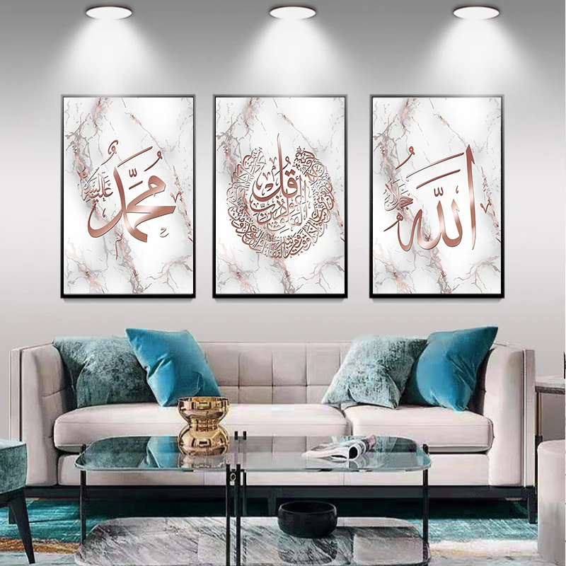 Мусульманская каллиграфия розового мрамора, постер на холсте, карти...