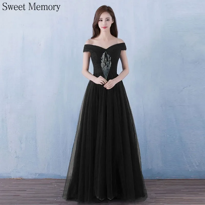 U10338 вырез лодочкой черные розовые темно-синие ярко-синие вечерние платья женские длинные фатиновые платья свадебное платье для гостей платье на шнуровке