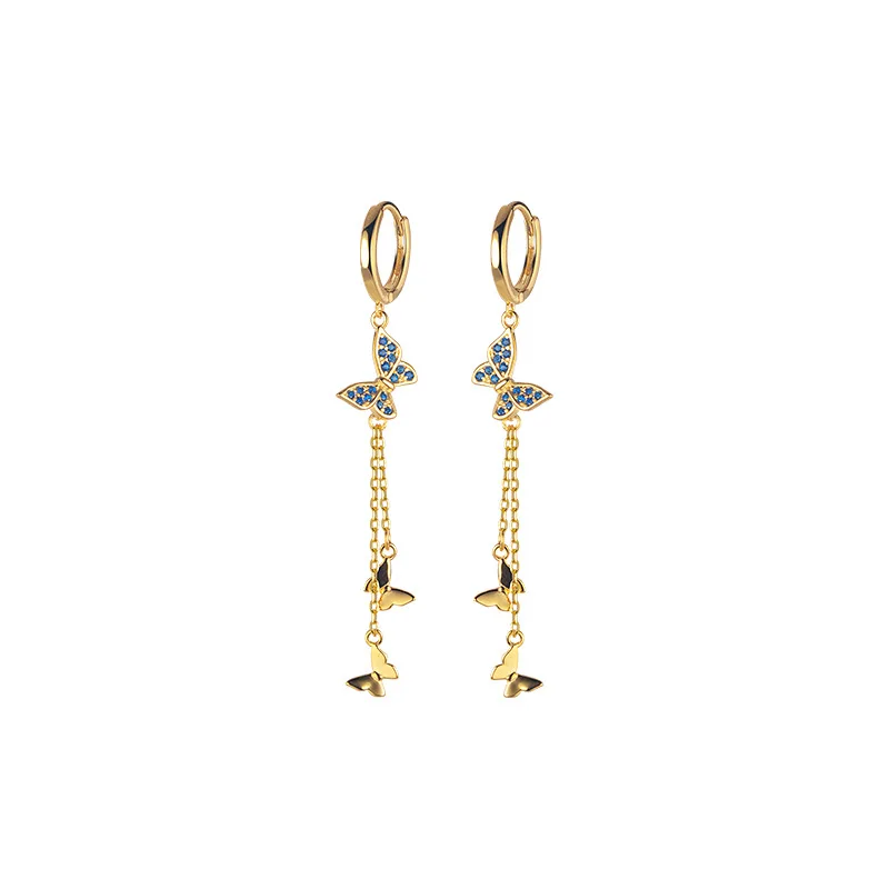 Женские серьги FOXANRY из серебра 925 пробы, со сверкающими бабочками и кисточками