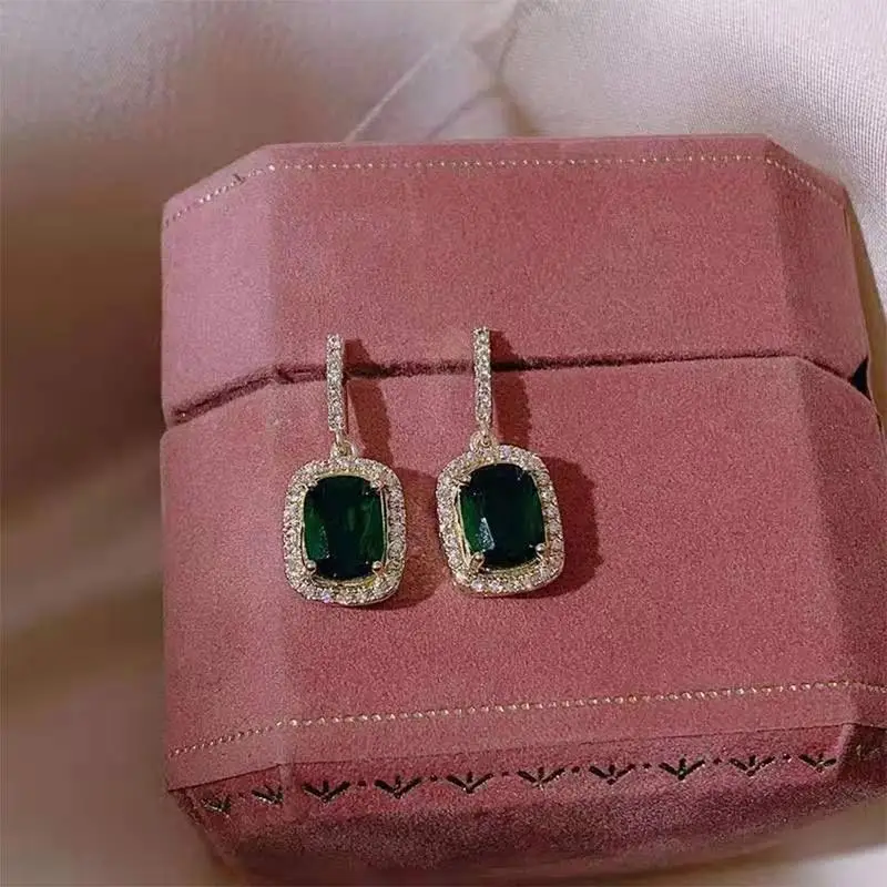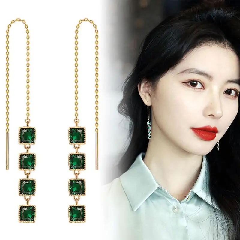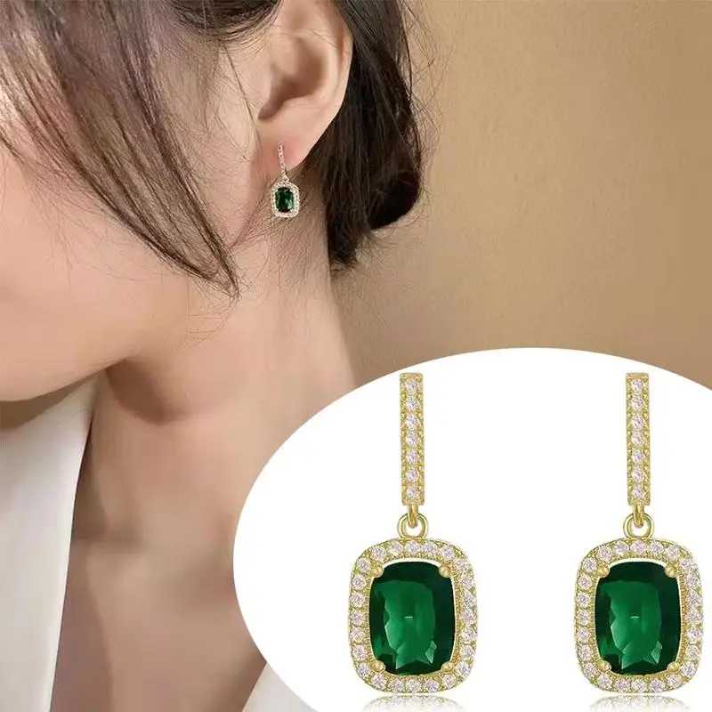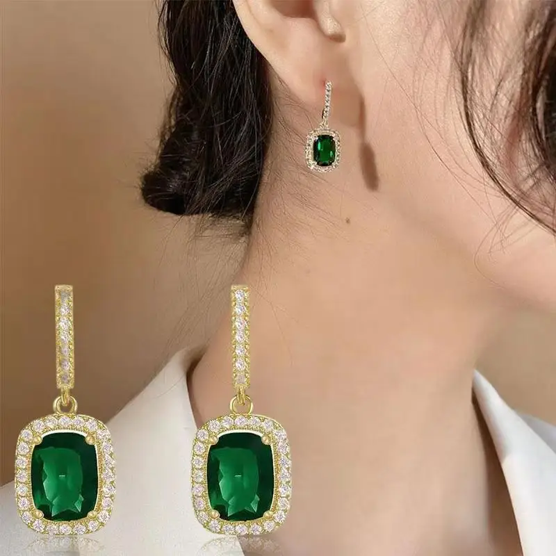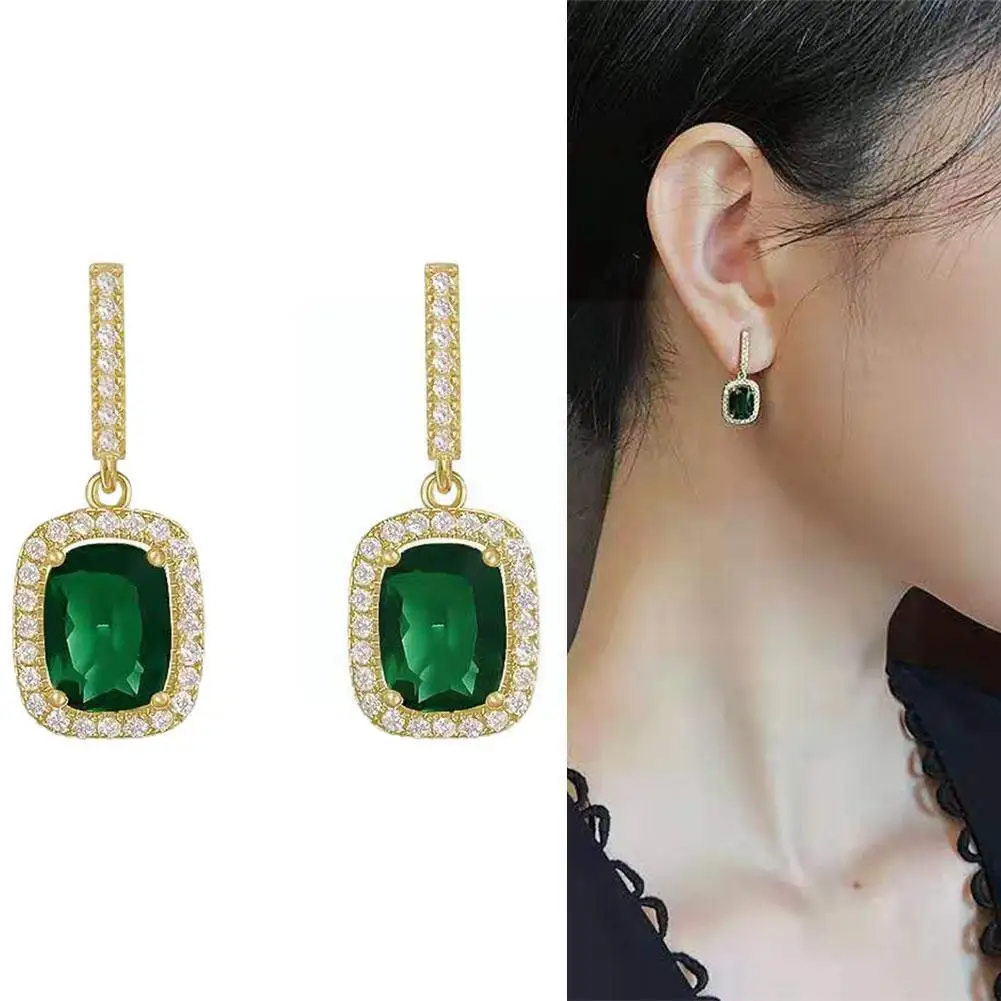 2021 модные роскошные квадратные круглые висячие серьги с зелеными кристаллами для женщин, большие Подвесные серьги, Модная бижутерия B1f8