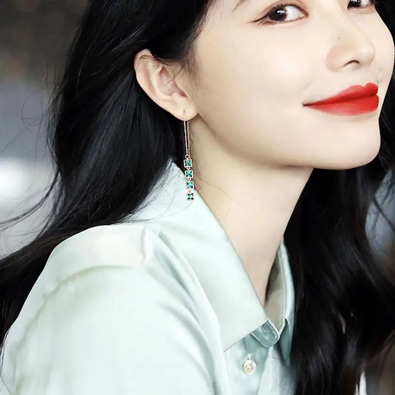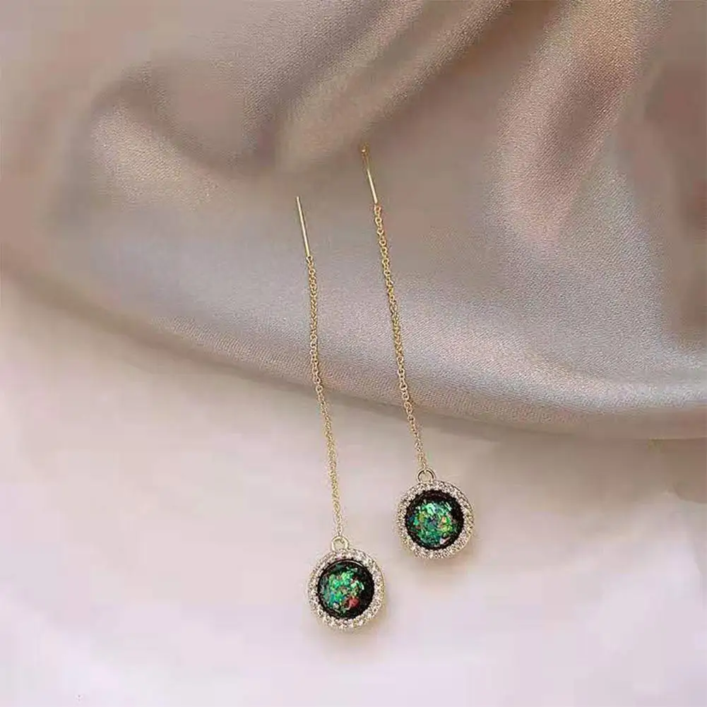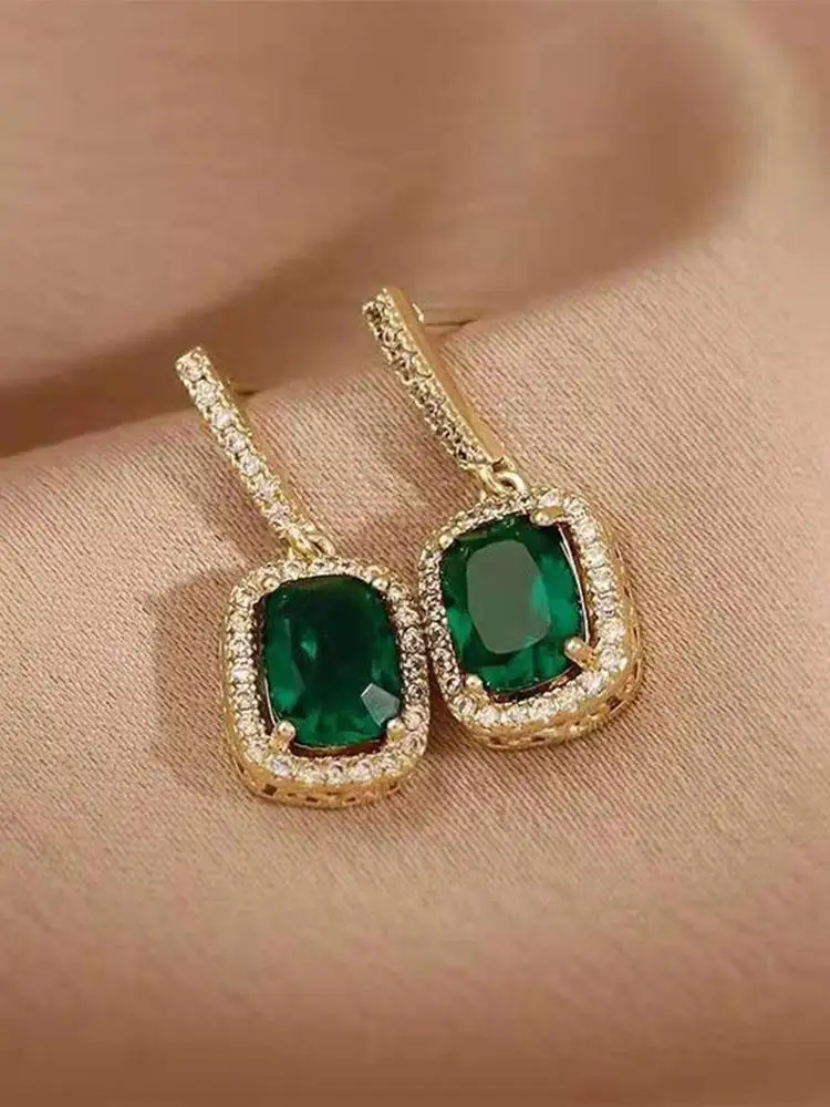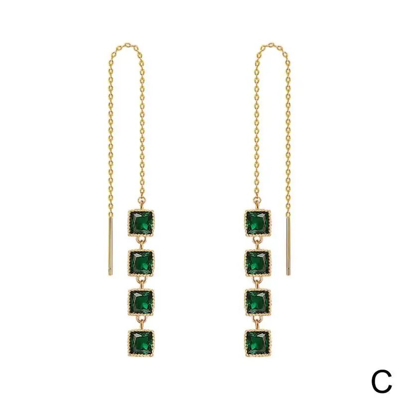 2021 модные роскошные квадратные круглые висячие серьги с зелеными кристаллами для женщин, большие Подвесные серьги, Модная бижутерия B1f8