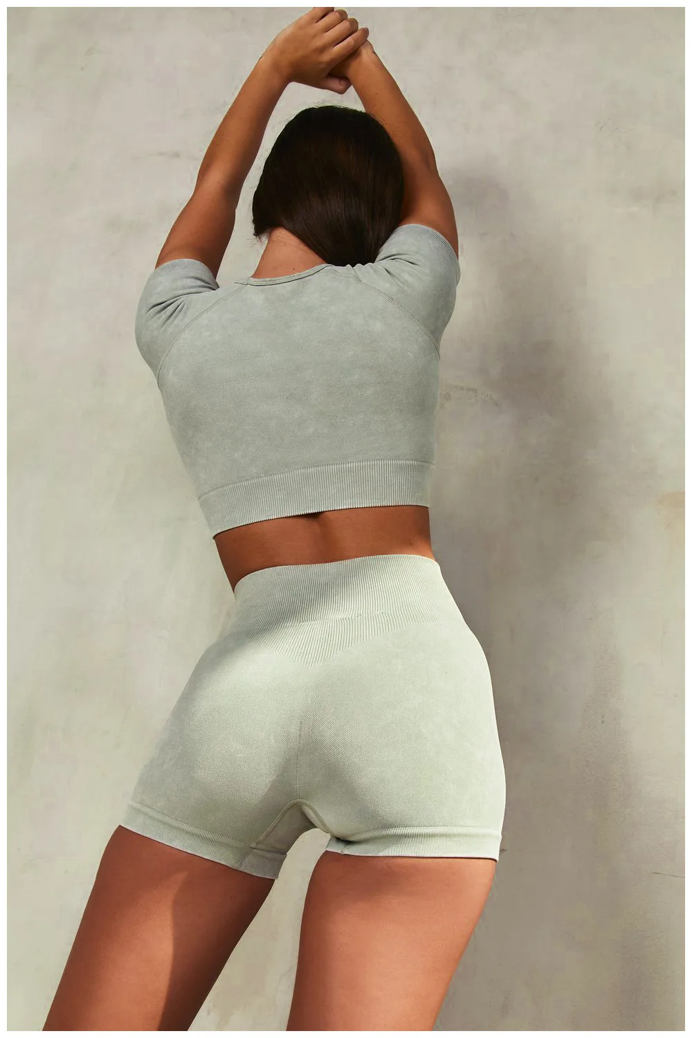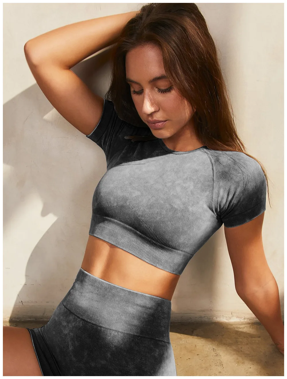 Бесшовный спортивный комплект для тренажерного зала, укороченный То...
