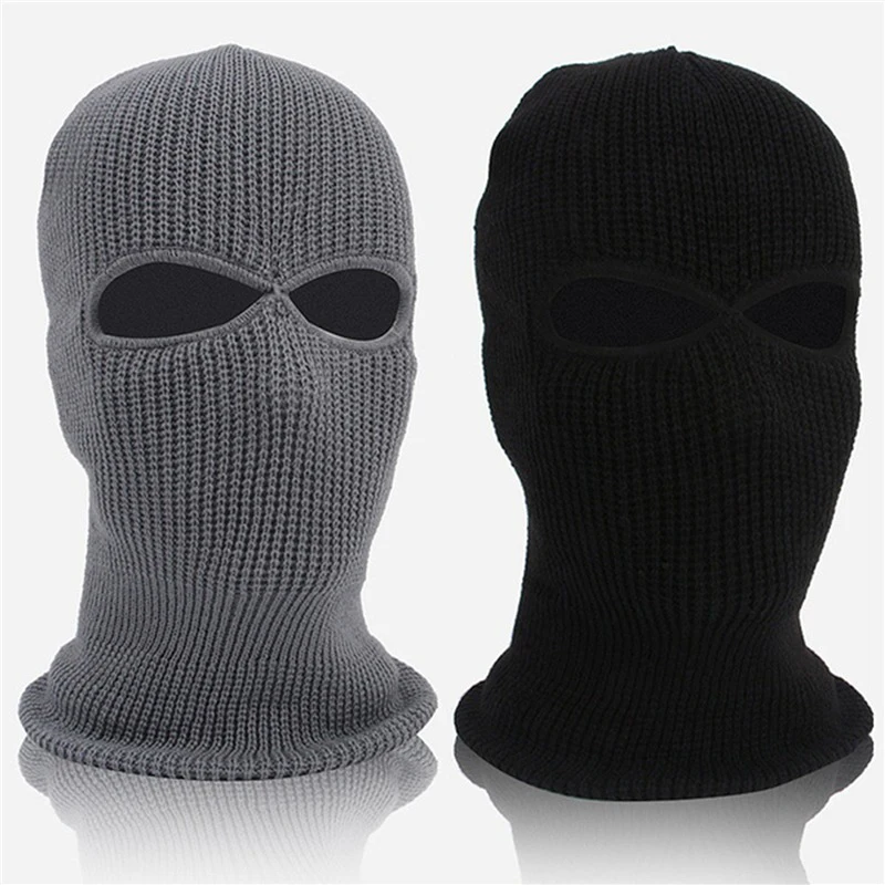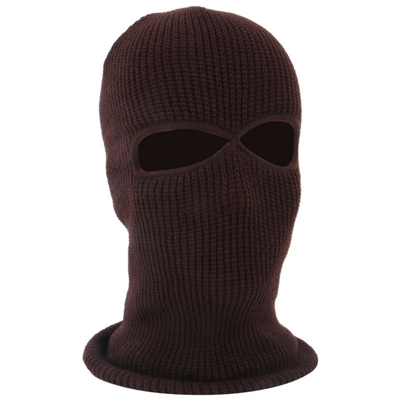 Зимняя вязаная шапка, теплая мягкая Лыжная шапка с 2 отверстиями, Балаклава, капюшон, мотоциклетный шлем, армейская тактическая шапка