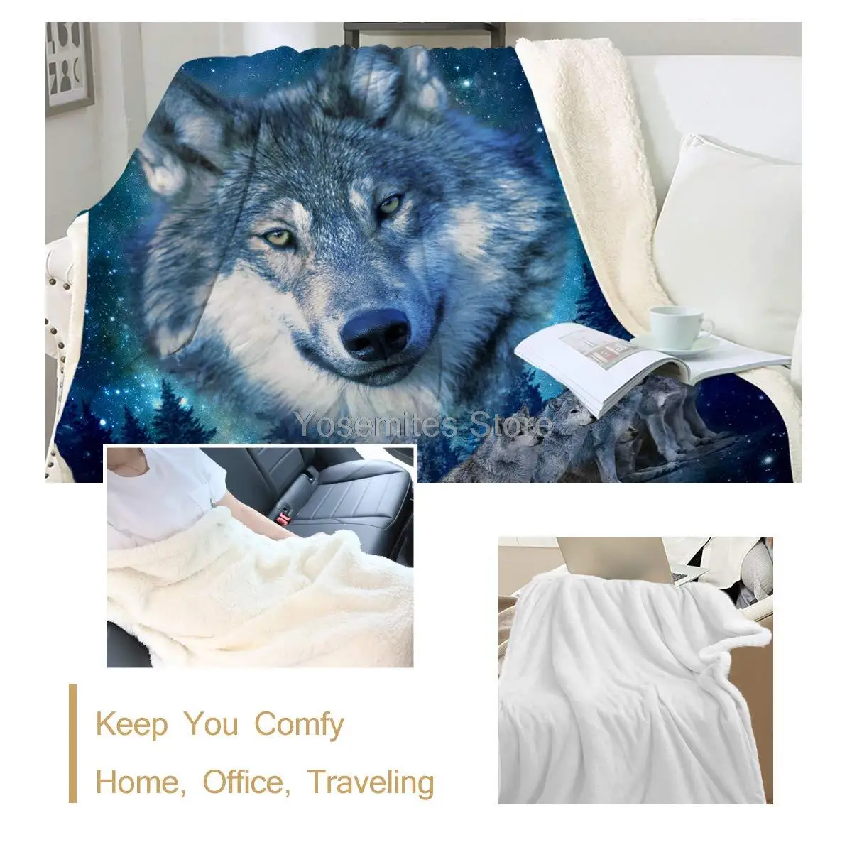 Флисовое одеяло с изображением голубого волка для сна, зимнее теплое удобное двустороннее одеяло с изображением животных, легкое мягкое плотное теплое одеяло для B