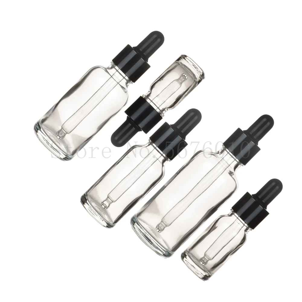 Прозрачная стеклянная бутылка-капельница с черной закручивающейся крышкой, бутылочки для эфирного масла со стеклянной пипеткой для лабораторных экспериментов, от 5 до 100 мл, 10 шт.