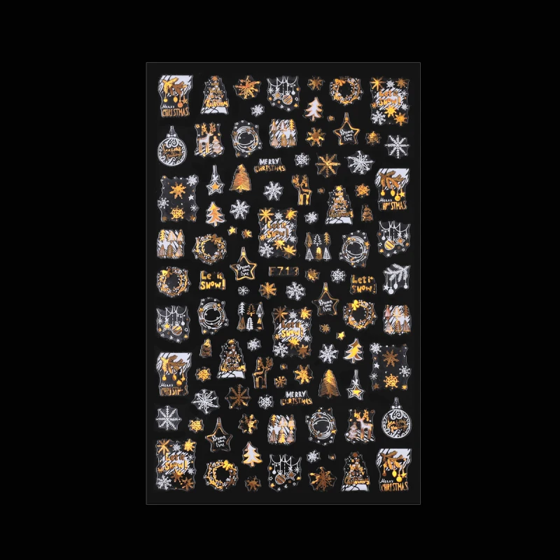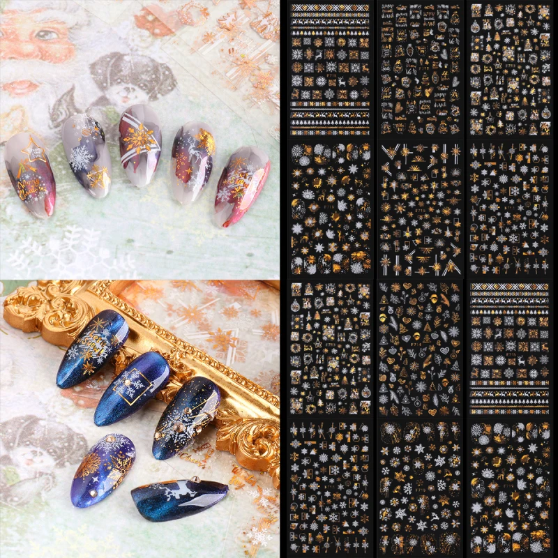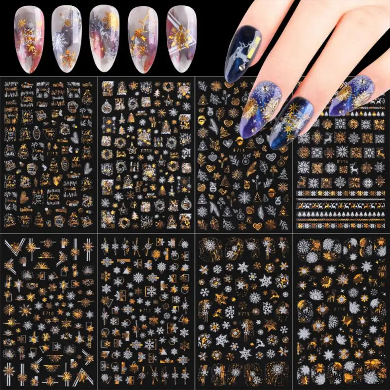 Наклейки для ногтей 3D зимние снежинки Лось лазерные золотые рождественские наклейки с английским алфавитом