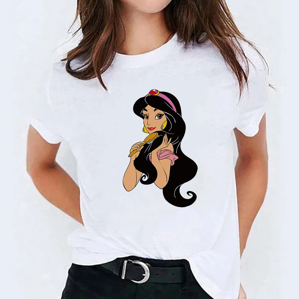 Женская модная футболка с изображением Принцессы Диснея Жасмин, Женская Футболка Harajuku Aladdin, уличная одежда, футболка Ulzzang, Прямая поставка, хип-хоп