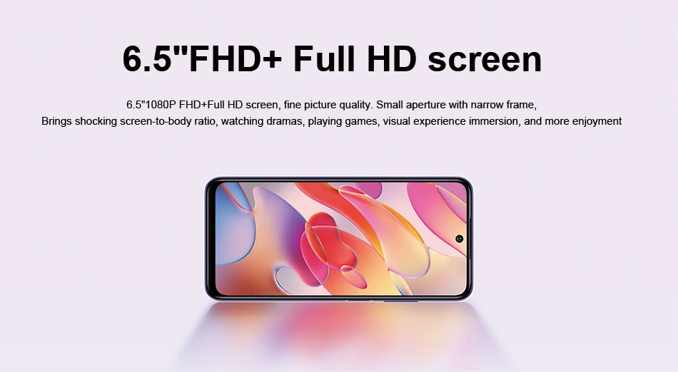Экран ---------- 6,5 "FHD + экран, 2400x1080 FHD +, частота обновления экрана 90 Гц