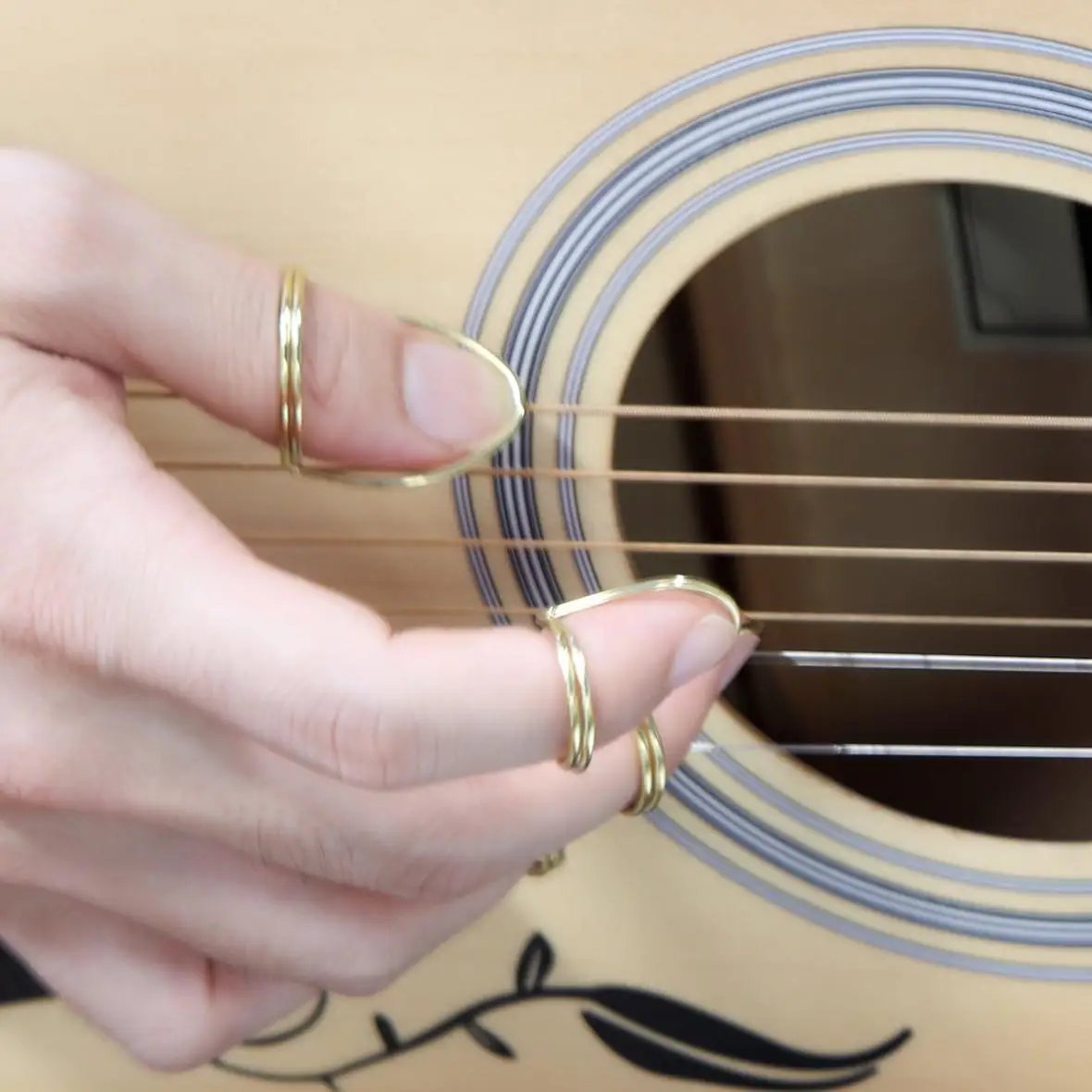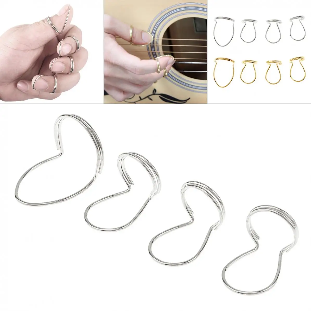 Особенности:-Специальные стили колец подходят для игры на гитаре/басах.-Включает в себя один палец и три указательных пальца.-Это может облегчить боль кончика пальца для длительной практики.-Это для гитарных бас струнных музыкальных инструментов.-Удобно надевать и снимать пальцы.