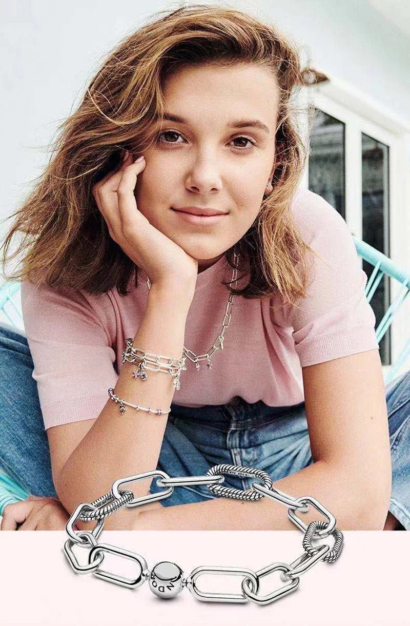 Браслет Pandora из серебра 925 пробы с оригинальным шармом, вышитые...