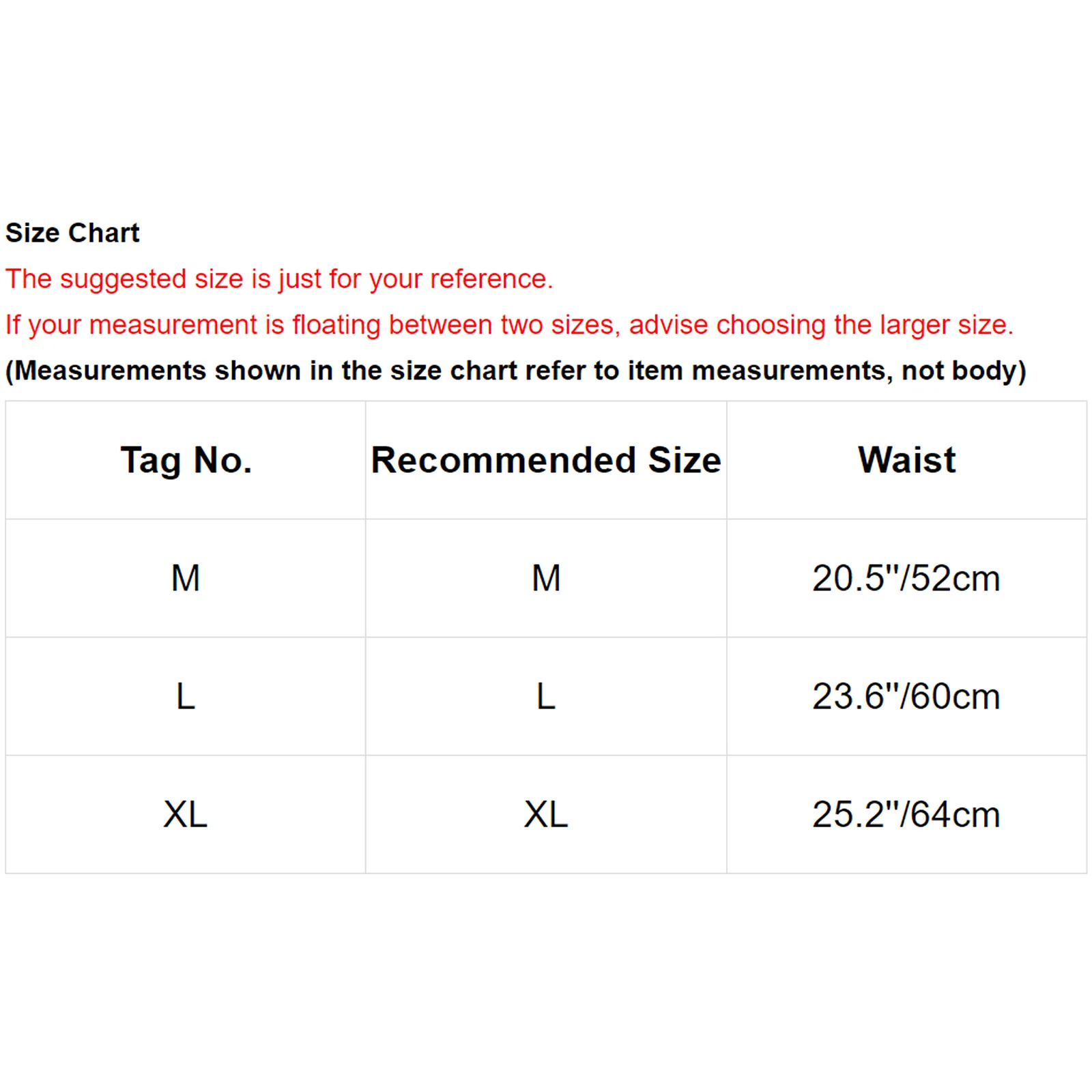 Номер бирки Рекомендуемый размер Талия М М 20,5 ''/52 см L L 23,6 ''/60 см XL XL 25,2 ''/64 смПолезные советы: Замеры делаются вручную, поэтому учитывайте небольшие погрешности.