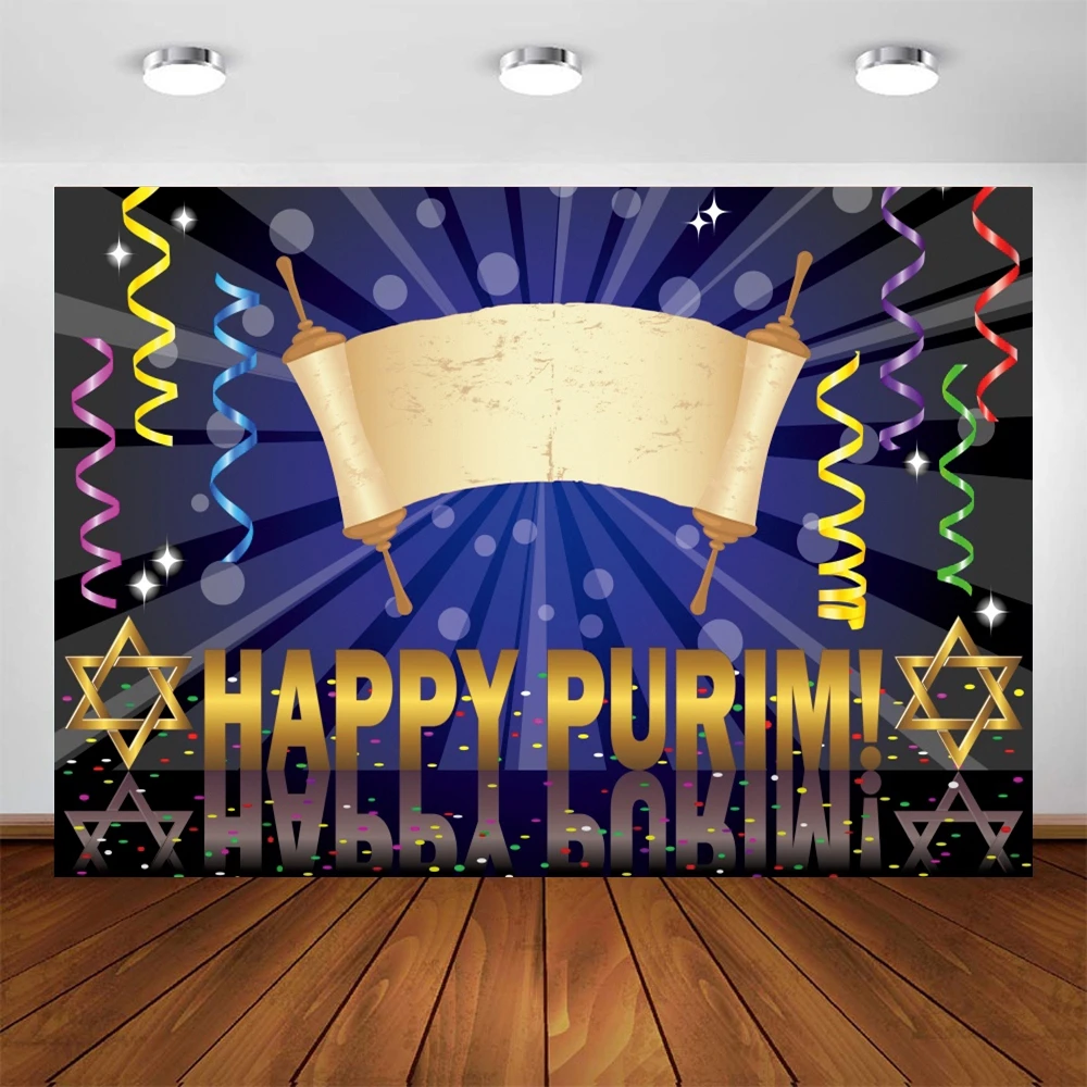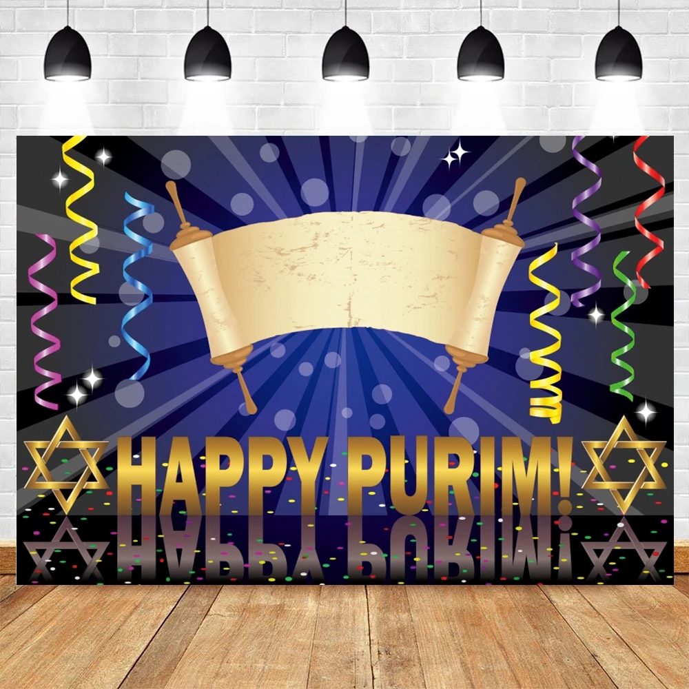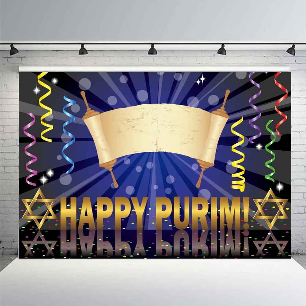Счастливый Пурим, еврейские праздники, фон для фотографий, красочная лента, Золотая Звезда, декор для вечеринки, фон для фотостудии