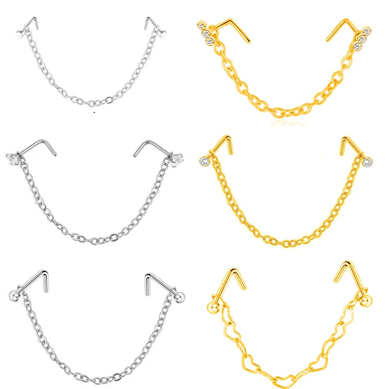 Никакого вреда для человеческого тела Товар: цепь на нос пирсинг Дизайн: ювелирные изделия для пирсинга двойным носом, ювелирные изделия для пирсинга двойными ушами Материал: хирургическая сталь Цвет: как показано Посылка включает в себя: 1 цепь и два шпильки Особенности: Антирадиационный, гипоаллергенный, не ржавеет, не боится пота, Перманентный блеск