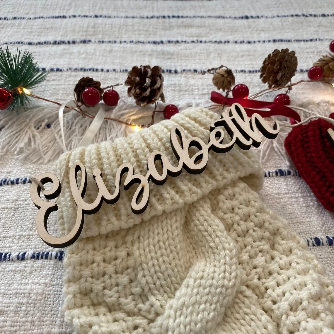 Персонализированные имена для рождественских чулок, деревянные имена лазерной резки, Именные Бирки, имена обеденных мест, добавление в подарок