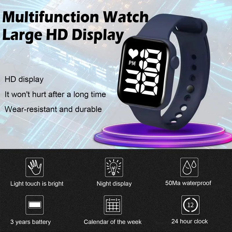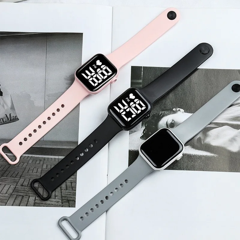Часы наручные светодиодные электронные, водонепроницаемые цифровые спортивные, с резиновым ремешком для мужчин и девочек