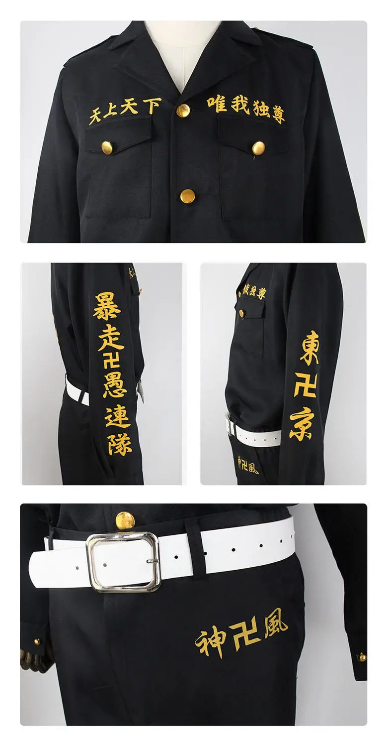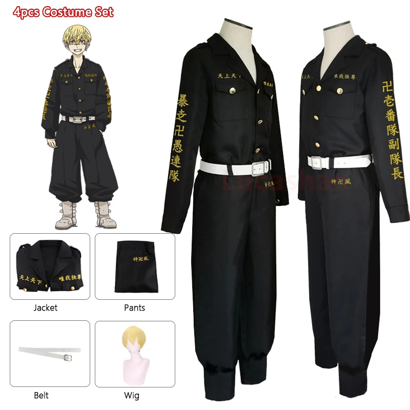 4шт Matsuno Chifuyu костюмы для ролевых игр Аниме манга токийские мстители костюмы для косплея Куртка Брюки Ремень Набор Париков Токио Мандзи Мстители Униформа Капитана Новый Год Костюм Хэллоуин Одежда Рождественской
