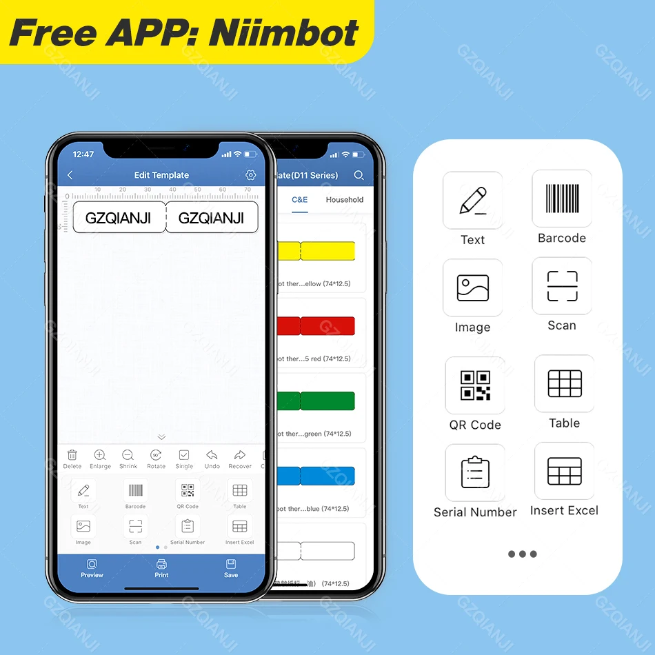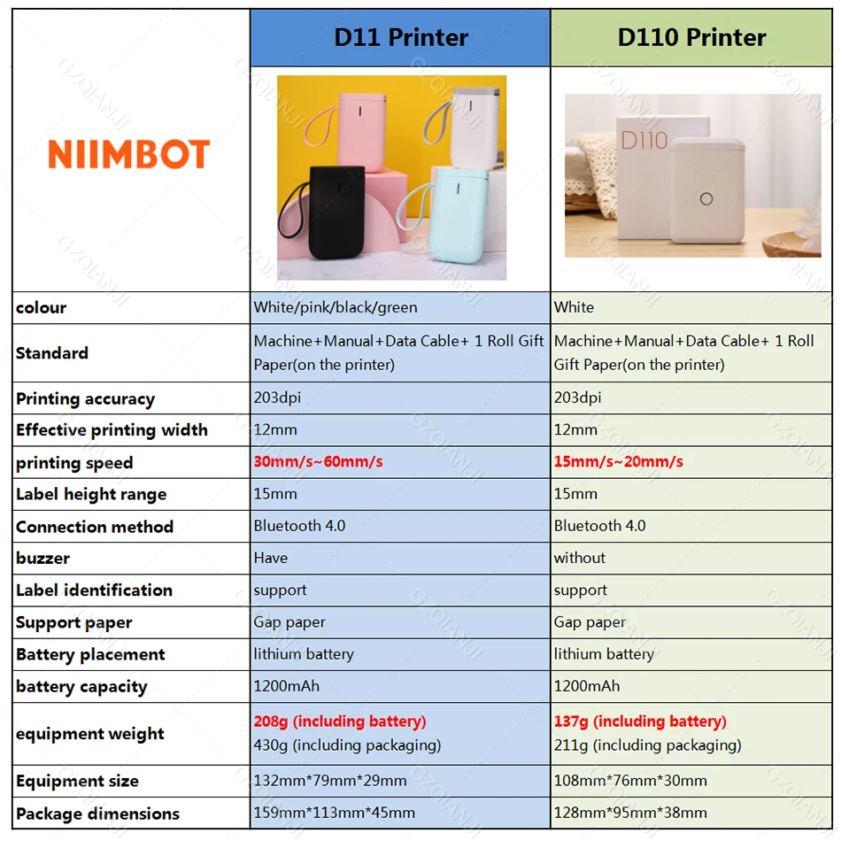 Многофункциональный портативный термопринтер для этикеток, мини-штрих-код для мобильного телефона Android iOS D11 Niimbot